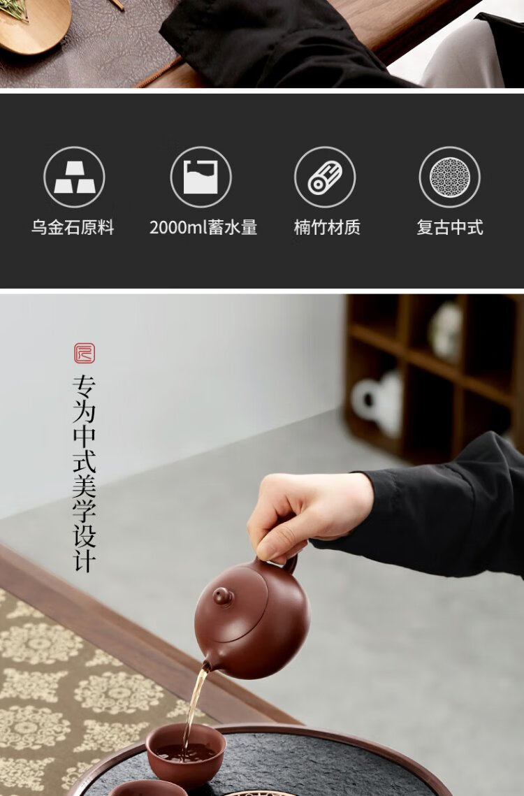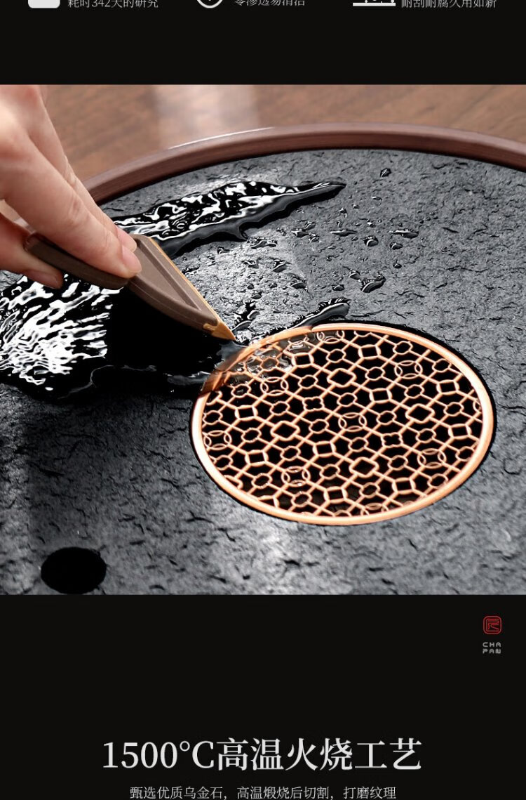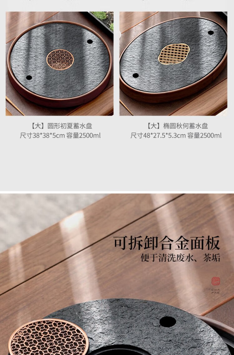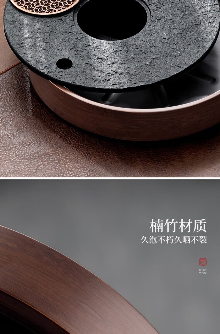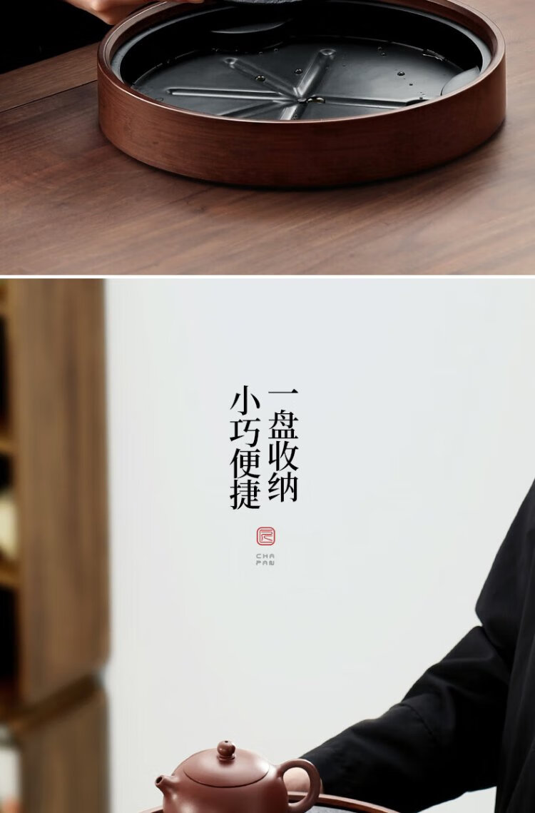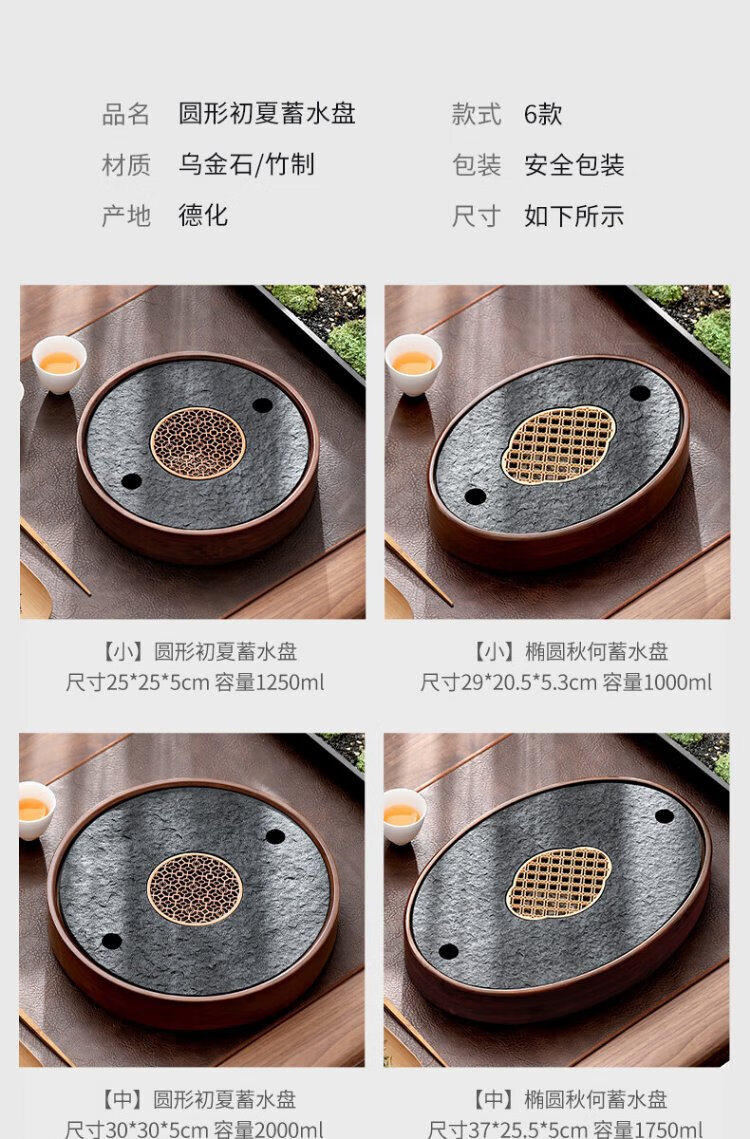 Shangyanfang natural black gold stone tea tray household round kung fu tea set tray water storage small tea table tea sea