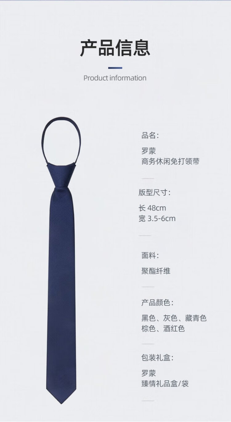Romon tie men's lazy zipper knot-free work formal business suit 6cm for boyfriend trendy gift box