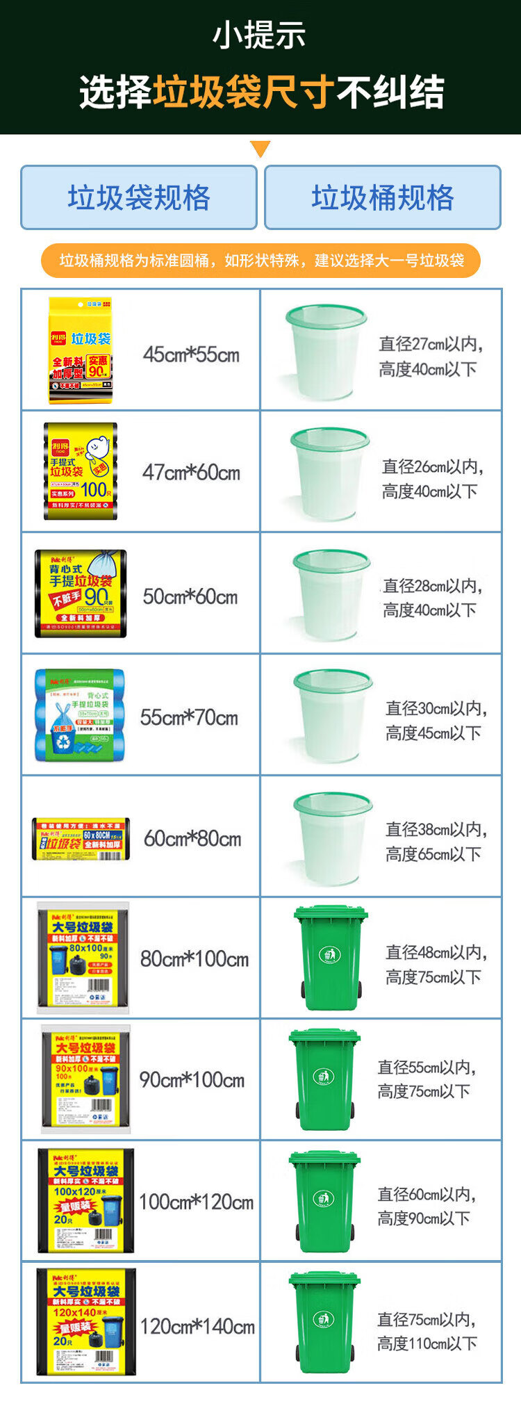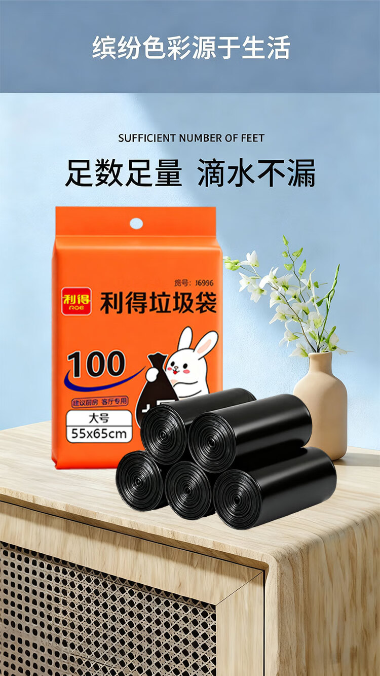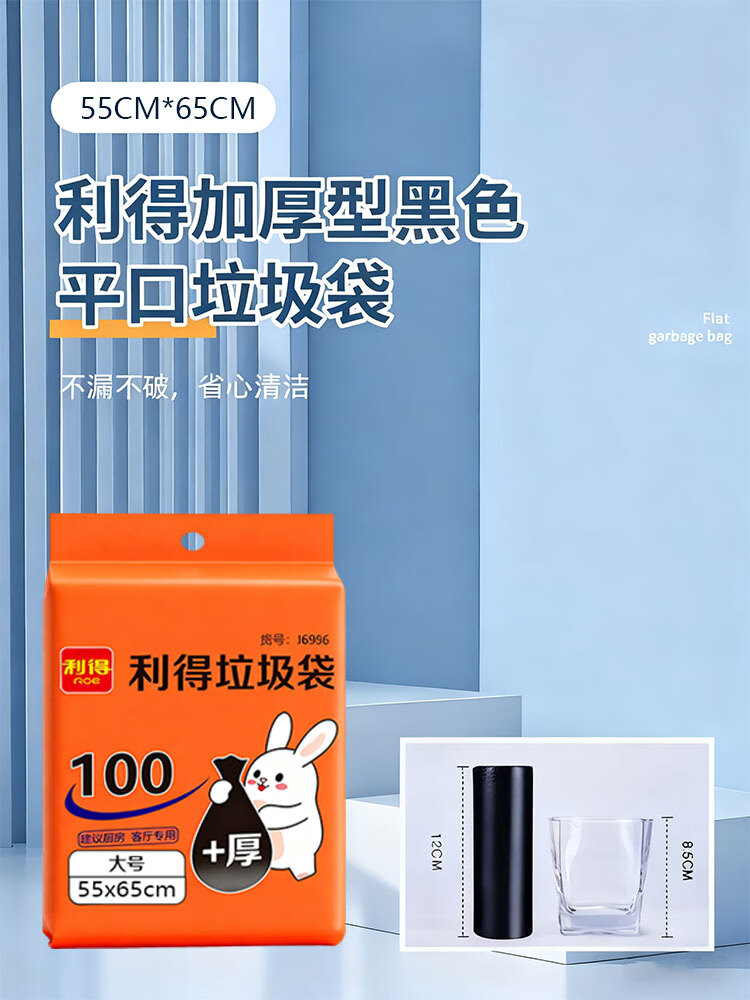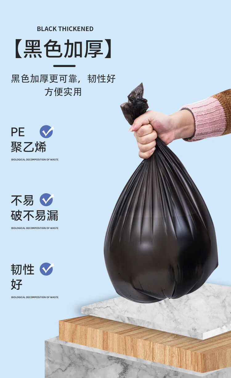 Lide Large Garbage Bags Thickened Black 55cm*65cm*100 Flat Bottom Garbage Bags Garbage Classification
