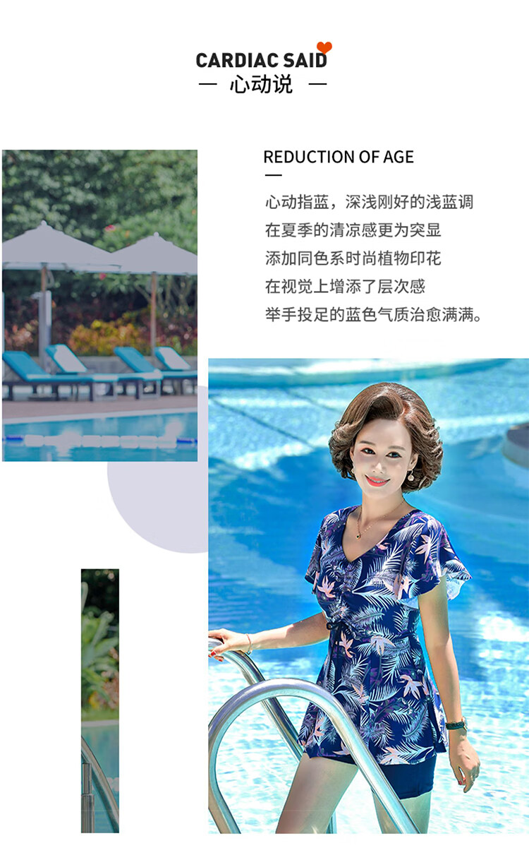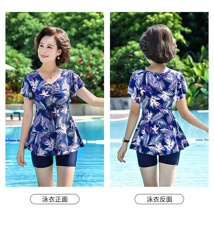 F.DYRAA swimsuit women's slimming hot spring dress conservative mother style middle-aged and elderly swimsuit four-piece set 11701 blue 2XL
