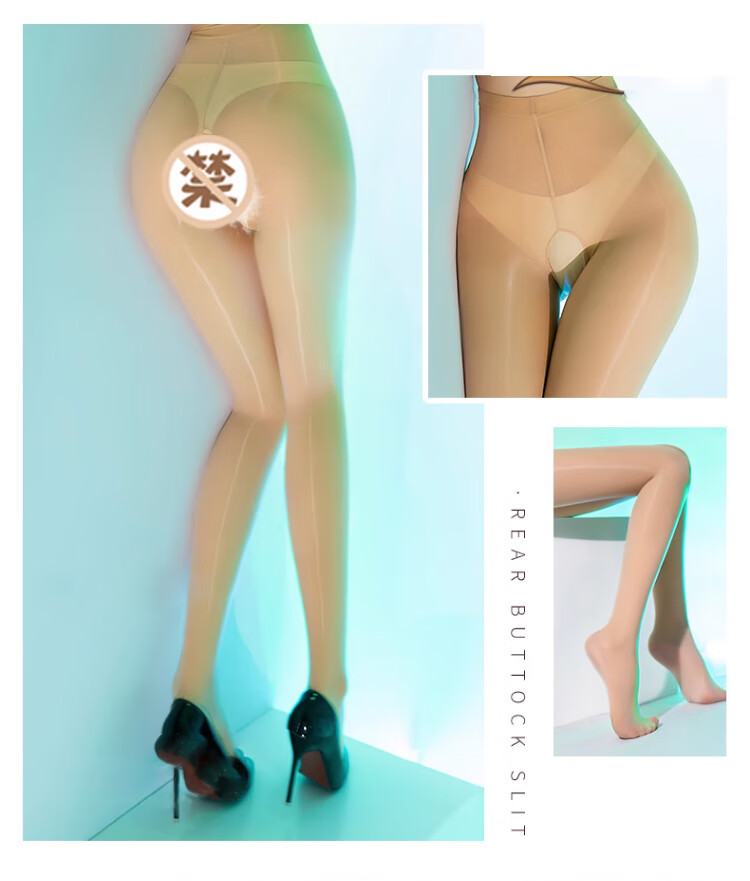 Langsha stockings women's crotchless horse oil stockings sexy and tempting oily shiny black stockings thin no-take-off pantyhose