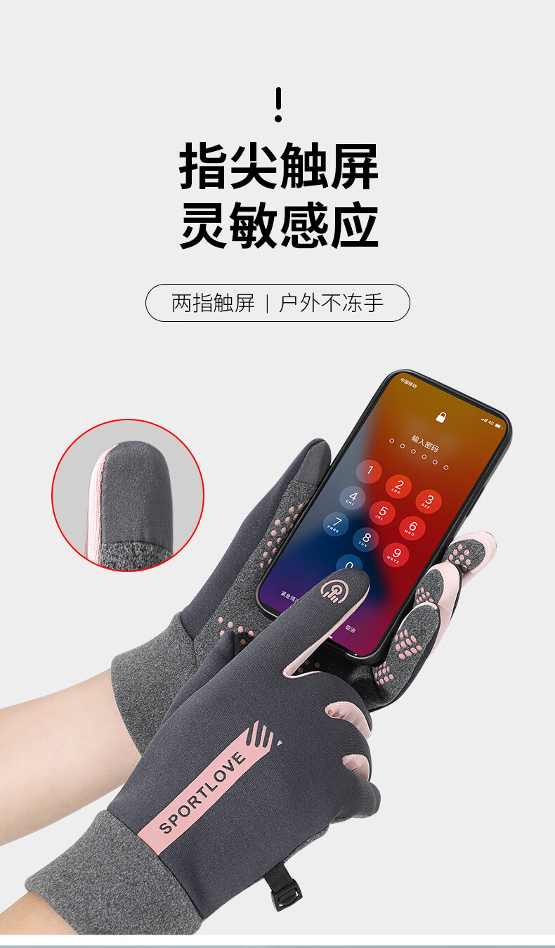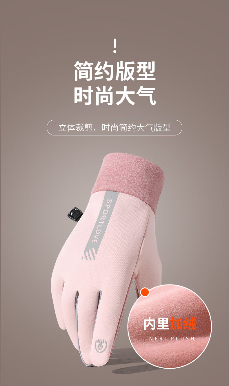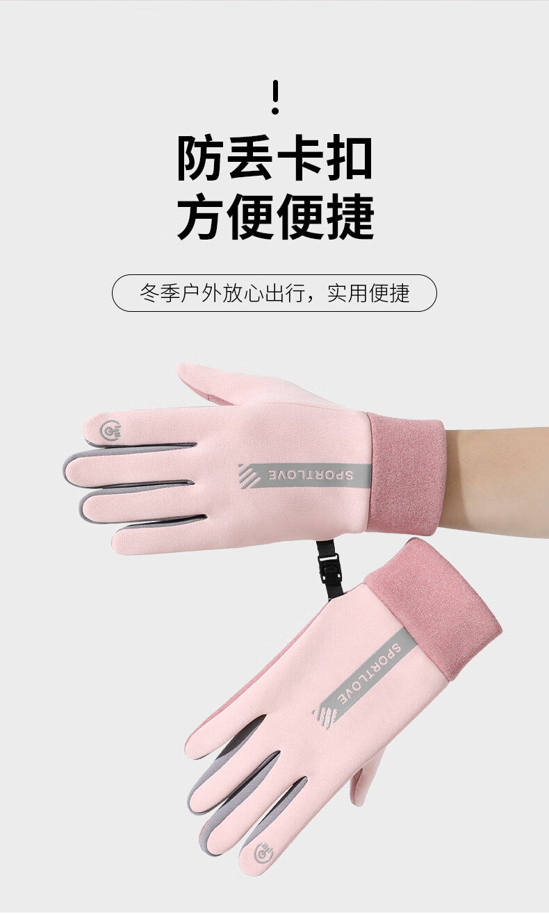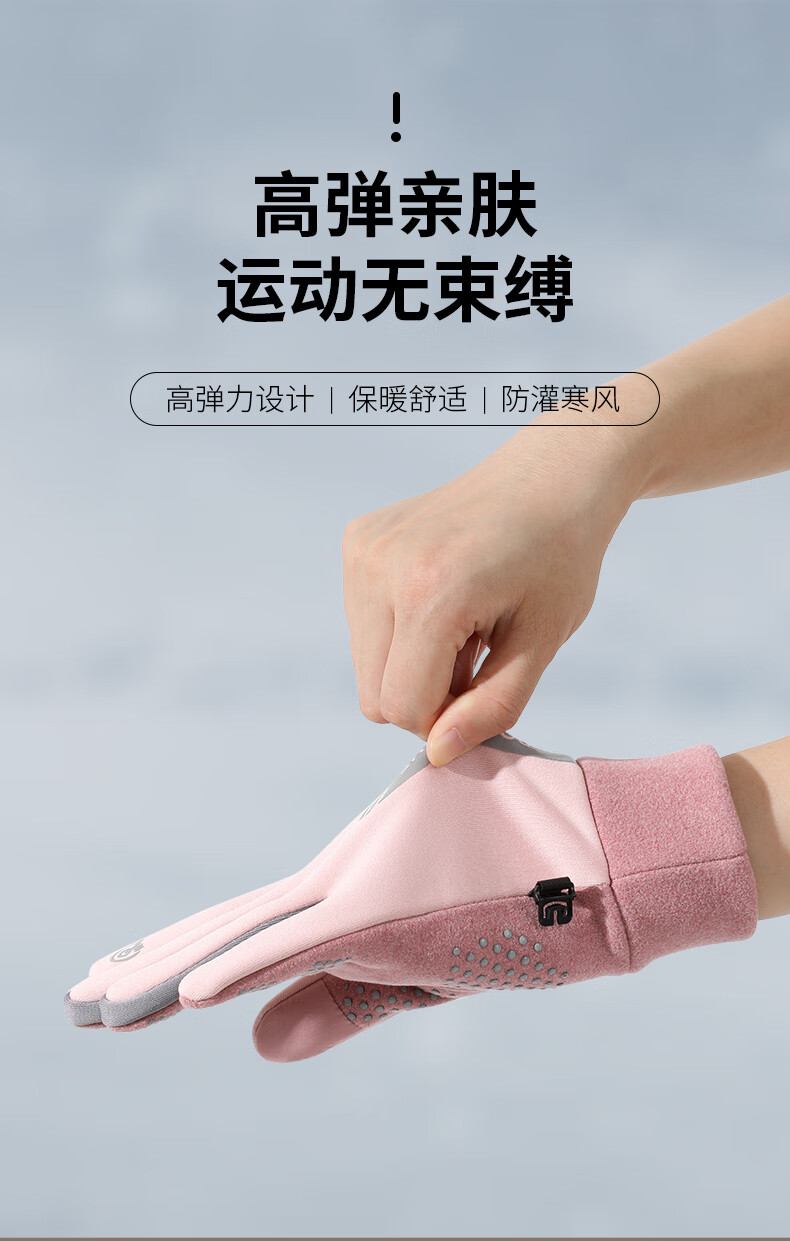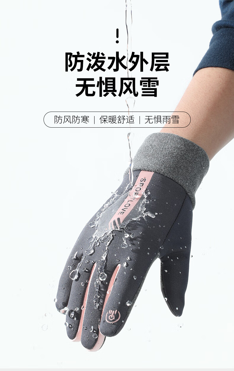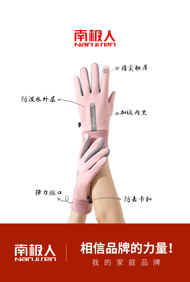 Antarctic Cycling Gloves Women's Winter Warm, Windproof and Cold-proof Plus Velvet Touch Screen Cycling Gloves Women's N2E2X851682 Pink Gray