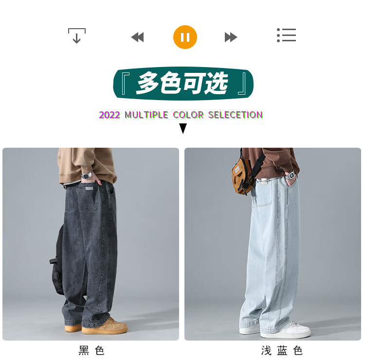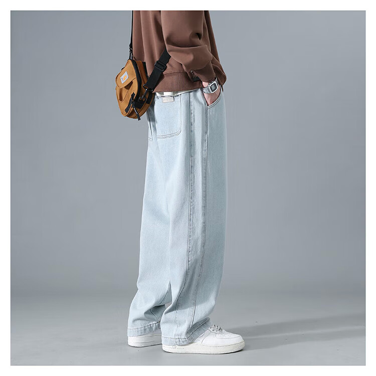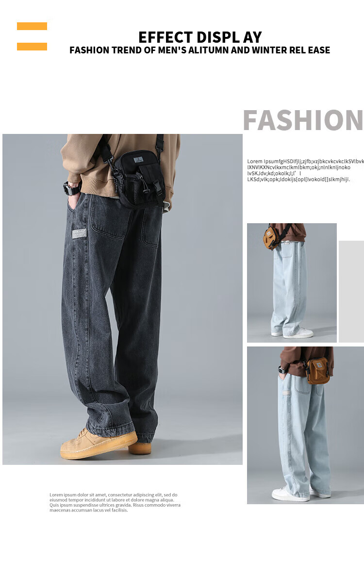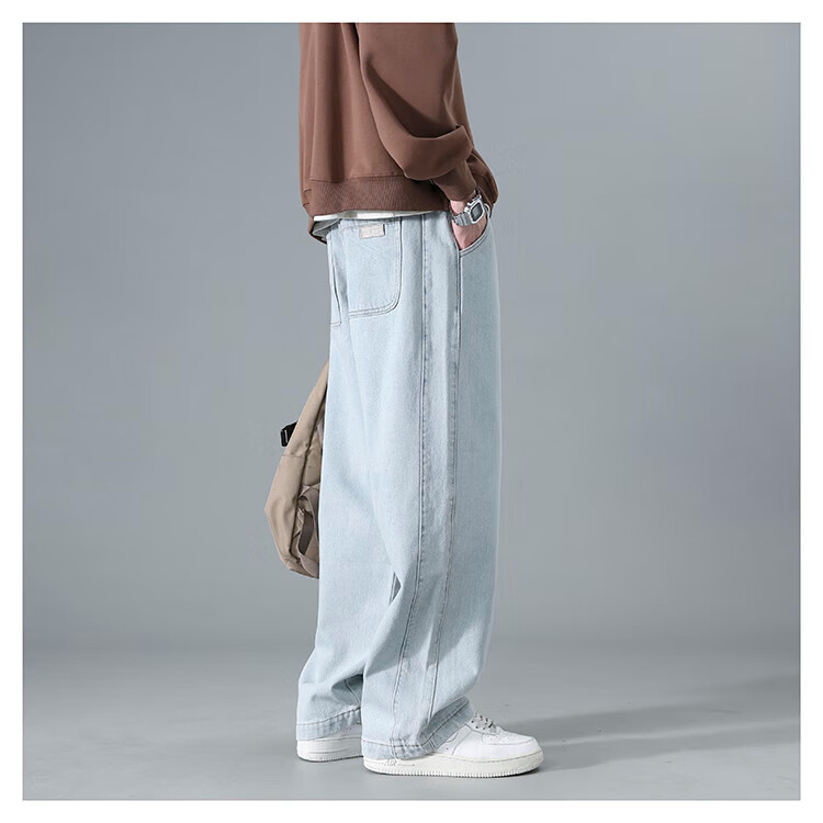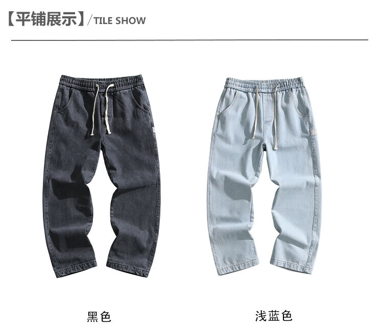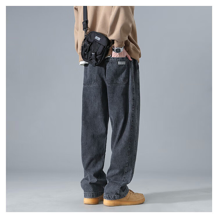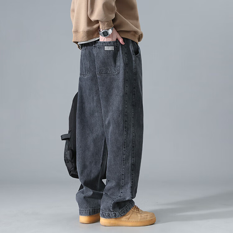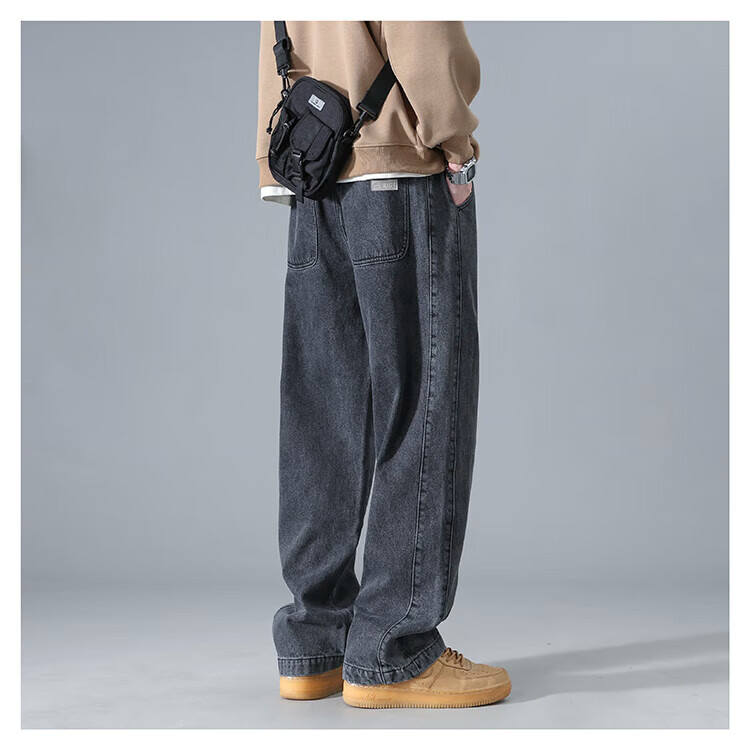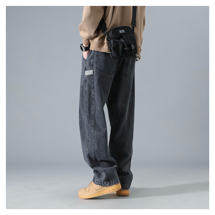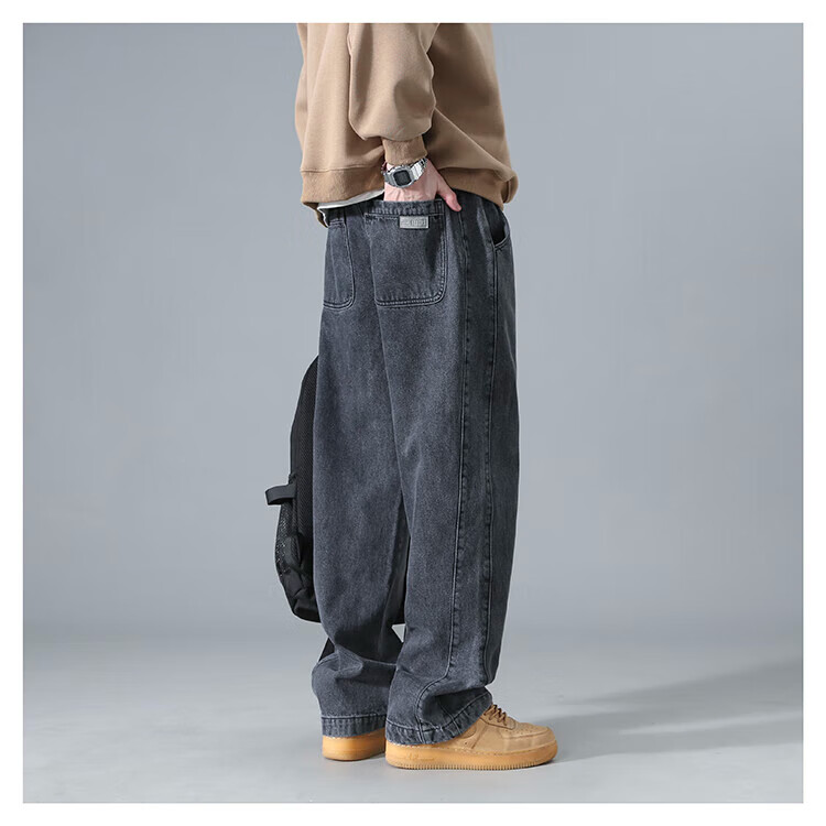 Dingfengbaoluo American washed jeans straight autumn trendy brand large size loose wide leg pants men DS61 black 4XL