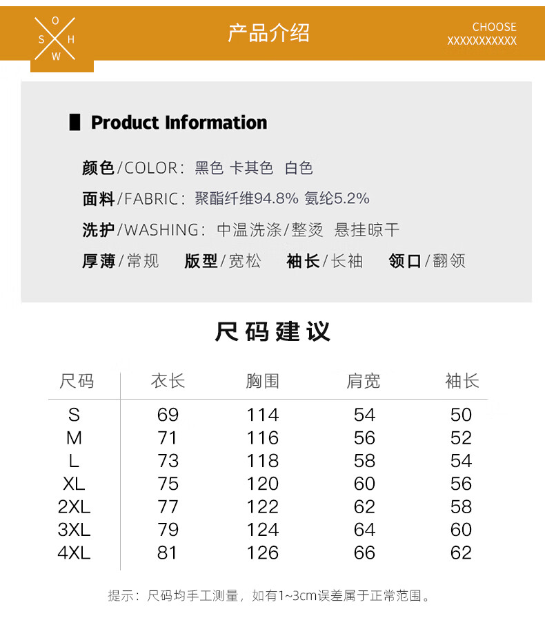 Size (cm) 42 44 46 48 50
