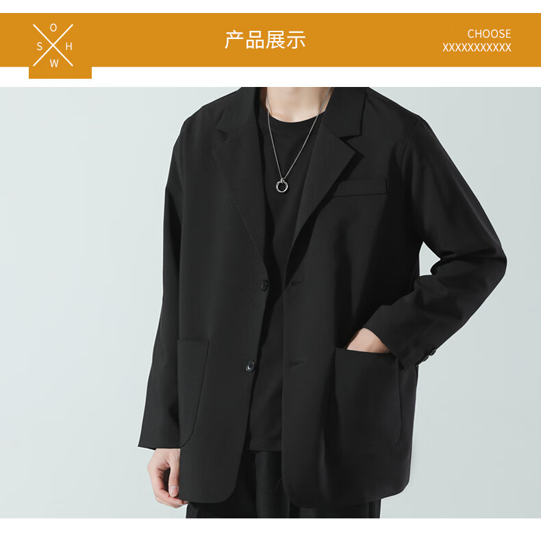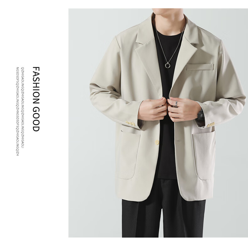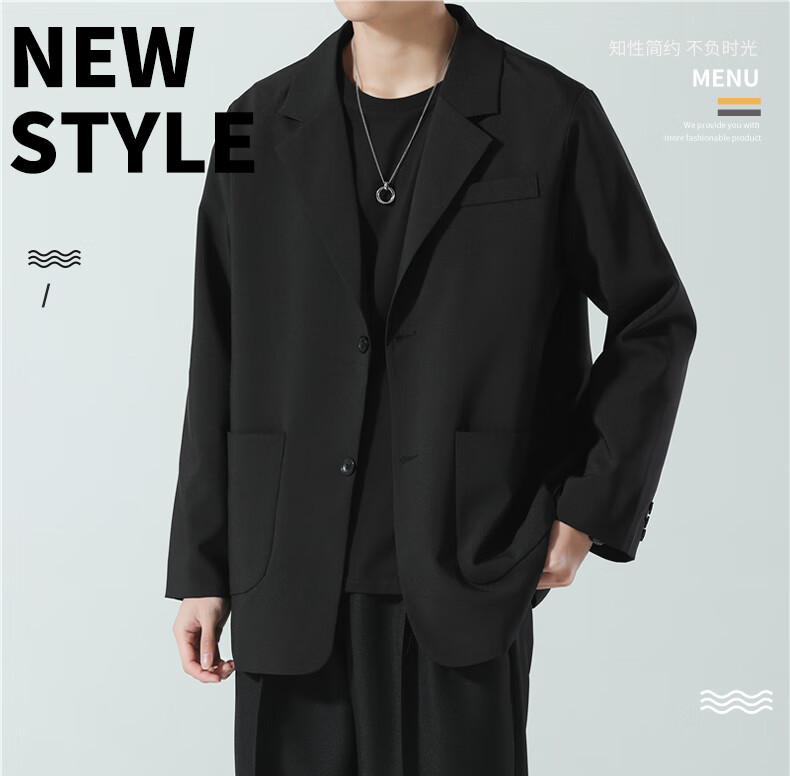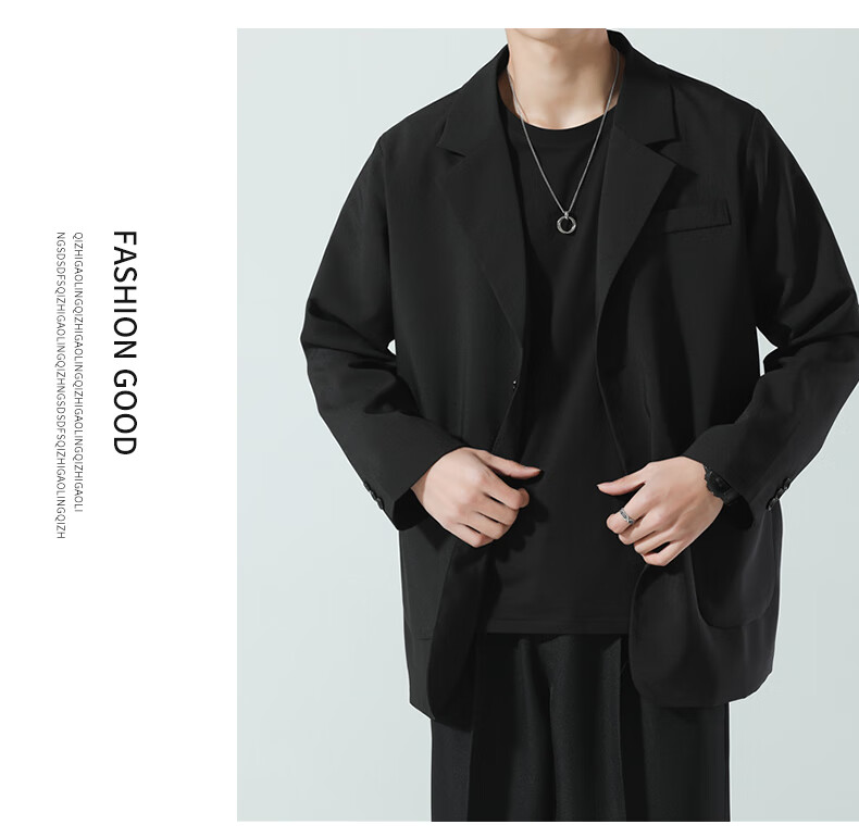 ROMON suit men's spring and autumn trendy loose lapel business single suit casual small suit jacket CG-K8 black XL