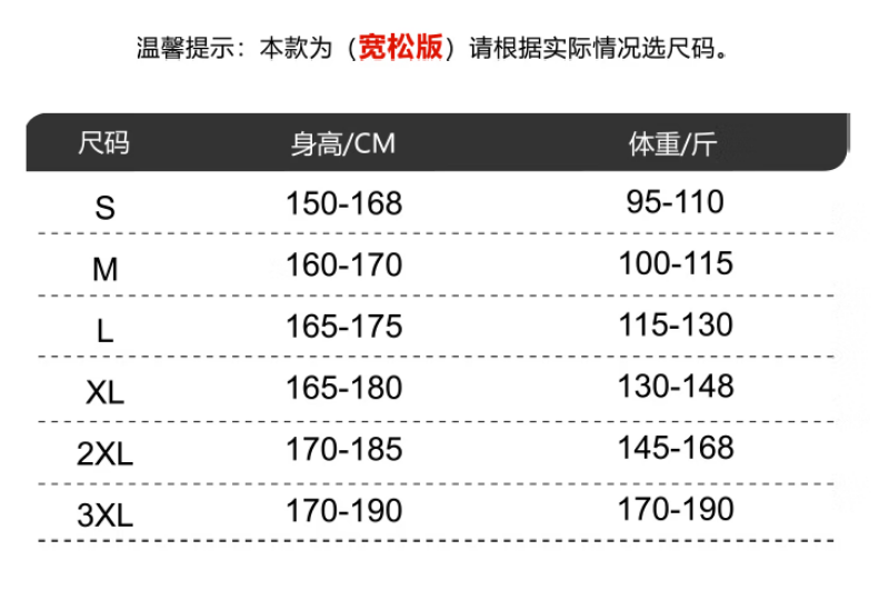 China (cm) 160-165/84-86 165-170 / 88-90 167-172 / 92-96 168-173 / 98-102 170-176 / 106-110