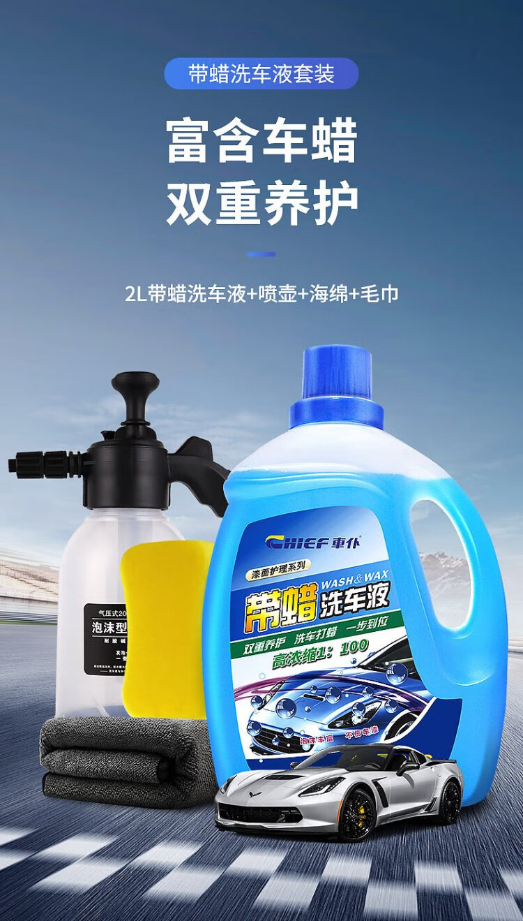 Car valet with wax car wash liquid 2L set Water wax powerful decontamination cleaning car polish coating special foam cleaning agent