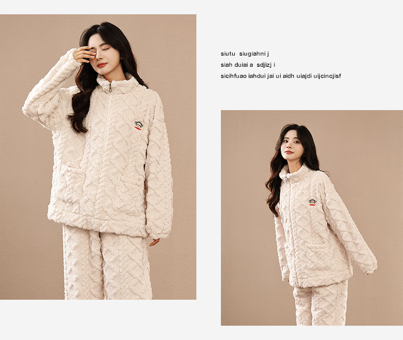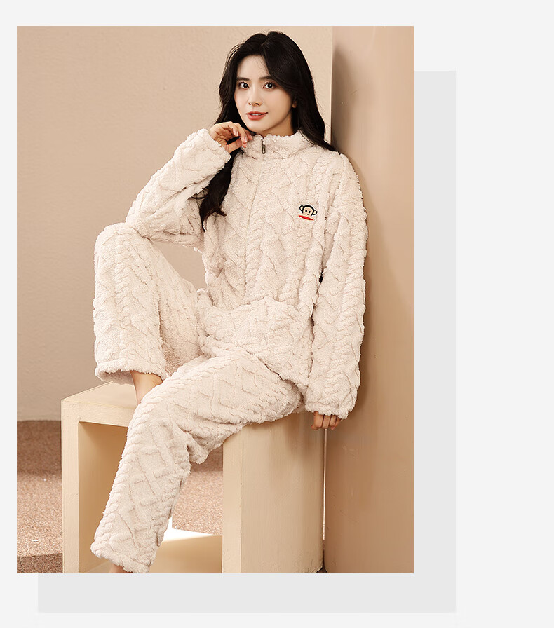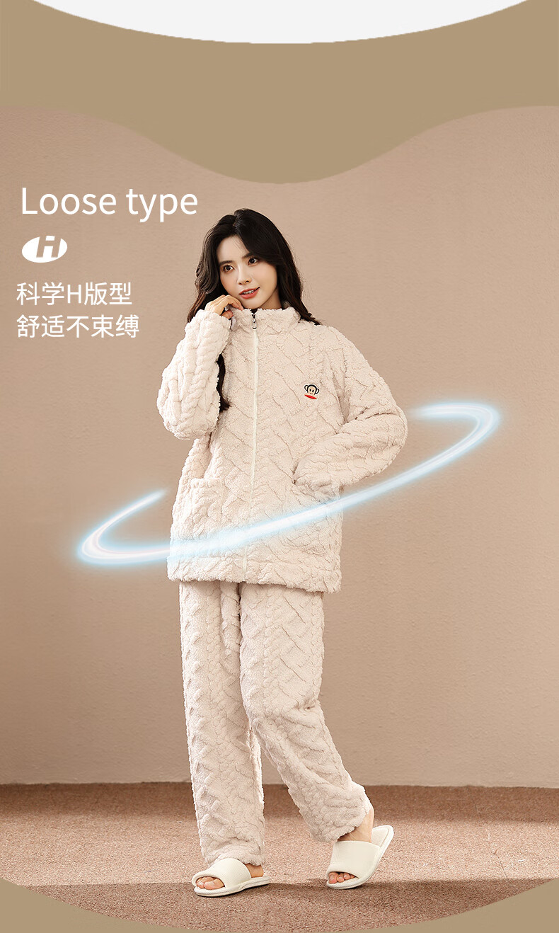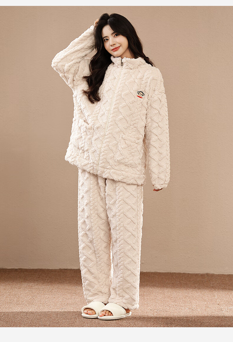 Big Mouth Monkey Big Mouth Monkey Couple Pajamas Winter Coral Velvet Jacquard Plus Velvet Thickened Home Clothes Women's Autumn and Winter Can Be Weared Outer Suit