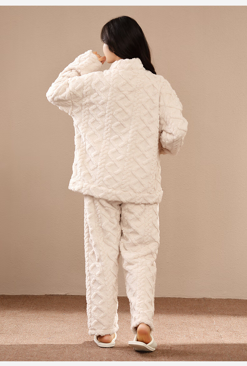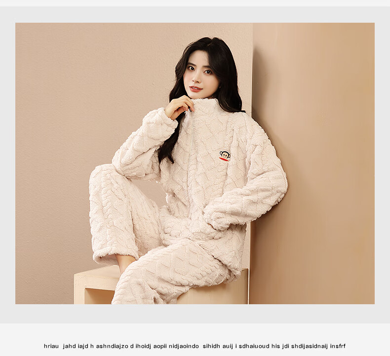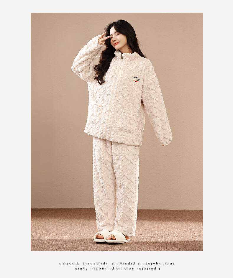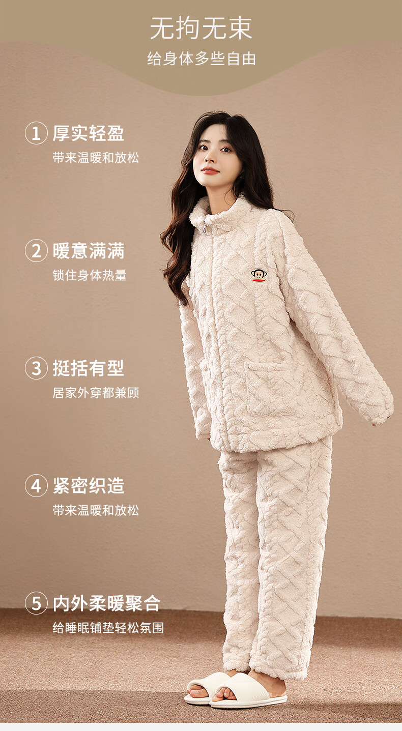 Big Mouth Monkey Big Mouth Monkey Couple Pajamas Winter Coral Velvet Jacquard Plus Velvet Thickened Home Clothes Women's Autumn and Winter Can Be Weared Outer Suit