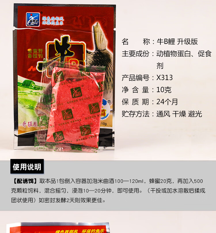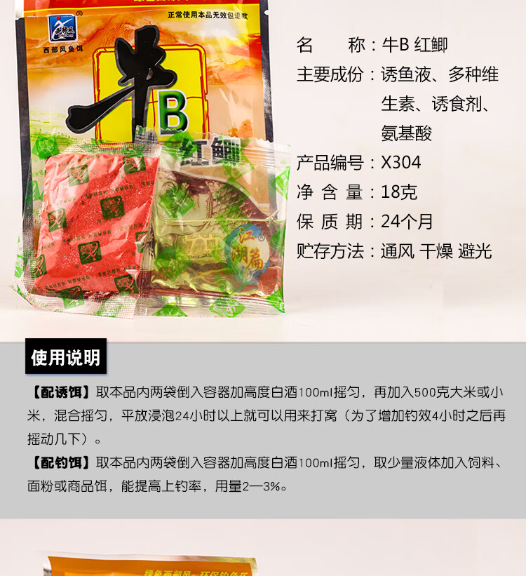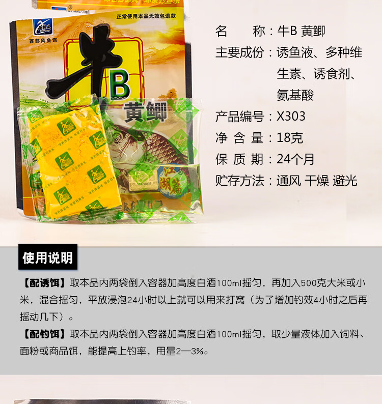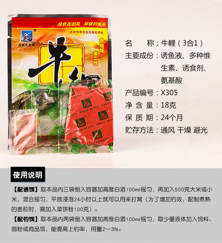 Western style Niu 8 carp wild fishing bait vitamin added fish attractant red and yellow crucian carp black pit soaked rice fishing bait Niu 8 carp second generation three-in-one 18g