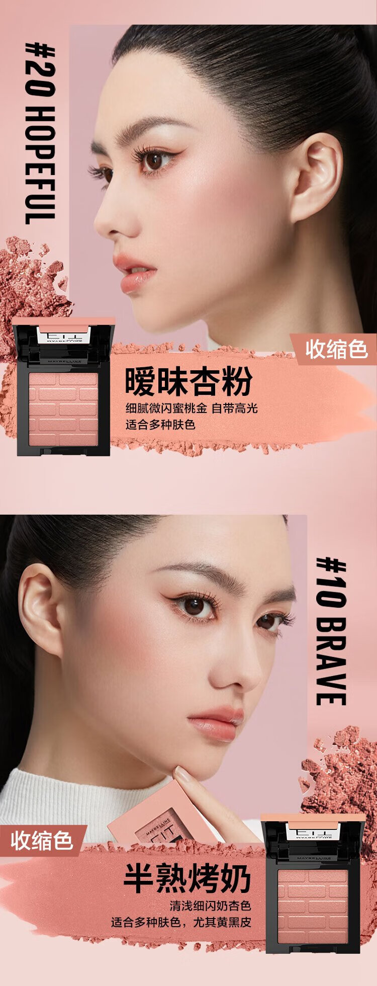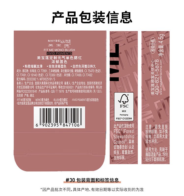 Maybelline Fitme Custom Vitality Single Color Blush Small Pink Brick 30 Half Drunk Rose 4.5g Birthday Gift for Women
