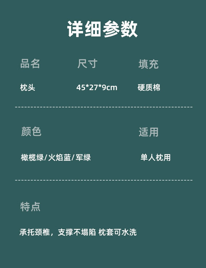 Wild Jungle Pillow Military Green Housekeeping Pillow for Single Person Military Green (Hard Cotton)