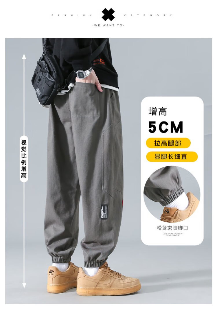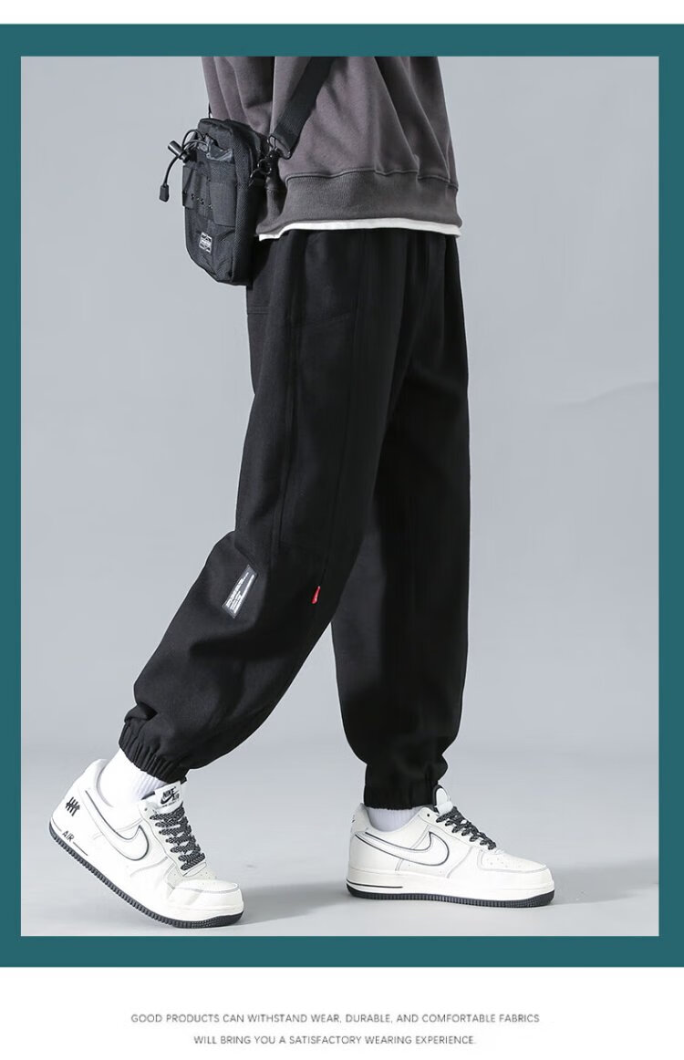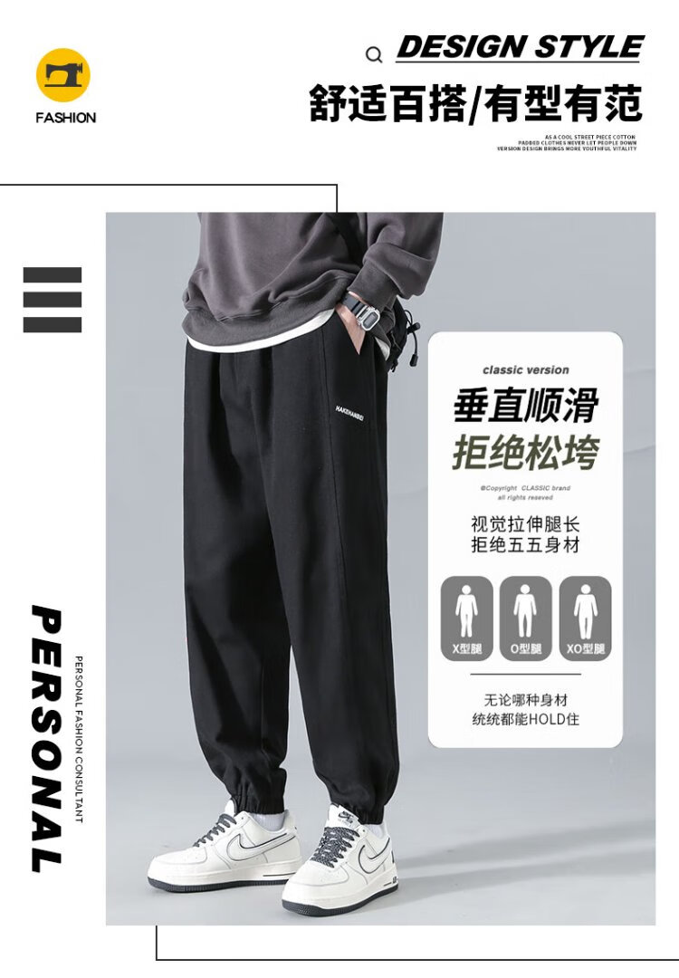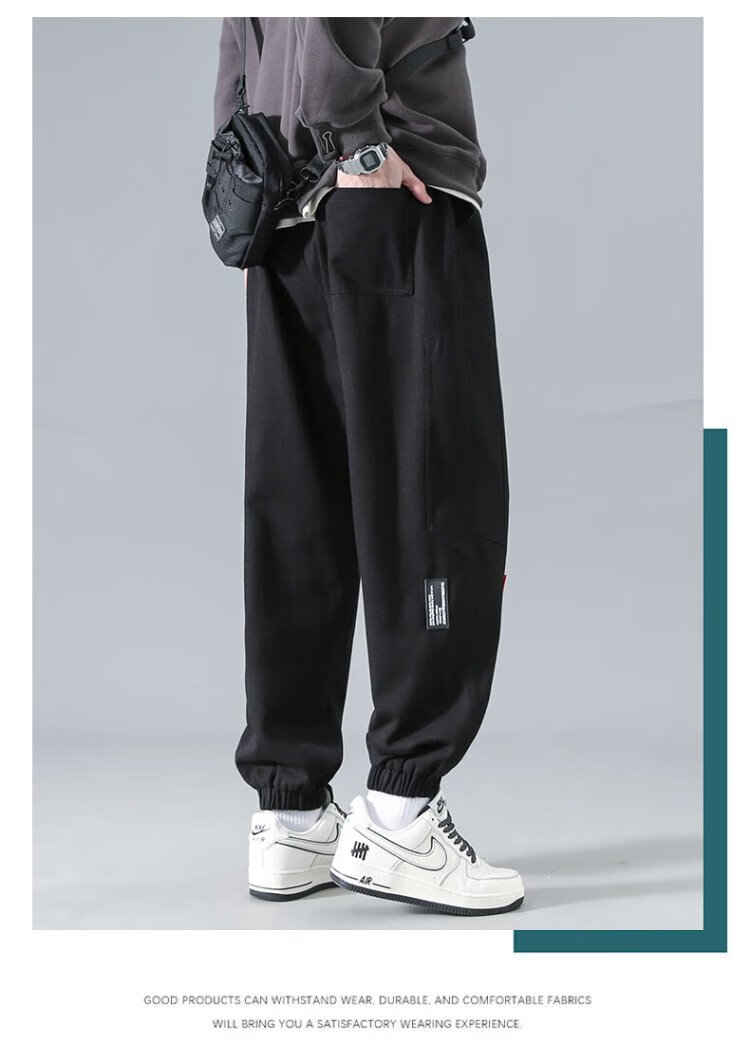 Dingfengbaoluo casual pants tapered men's autumn handsome trendy brand versatile workwear sports long pants K2061 black XL