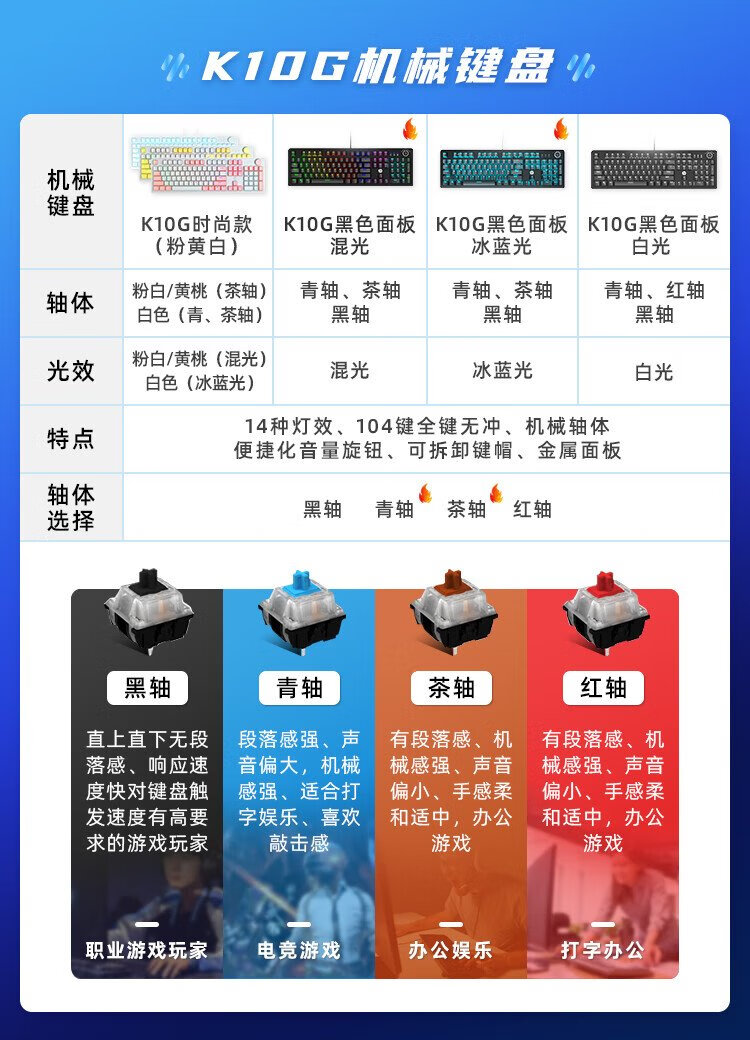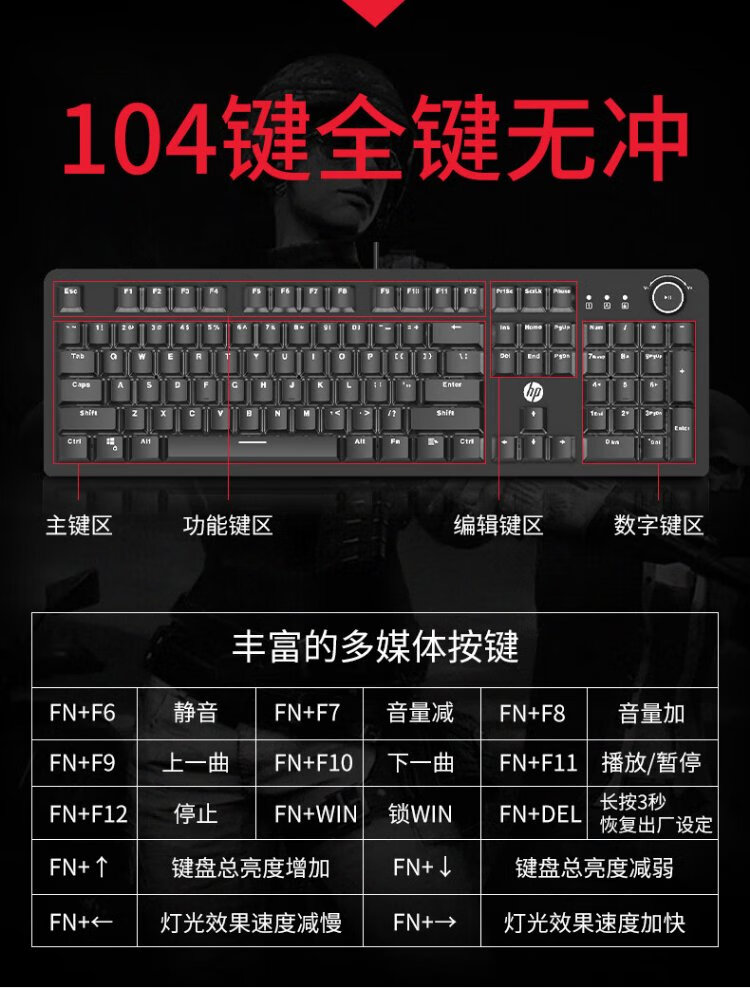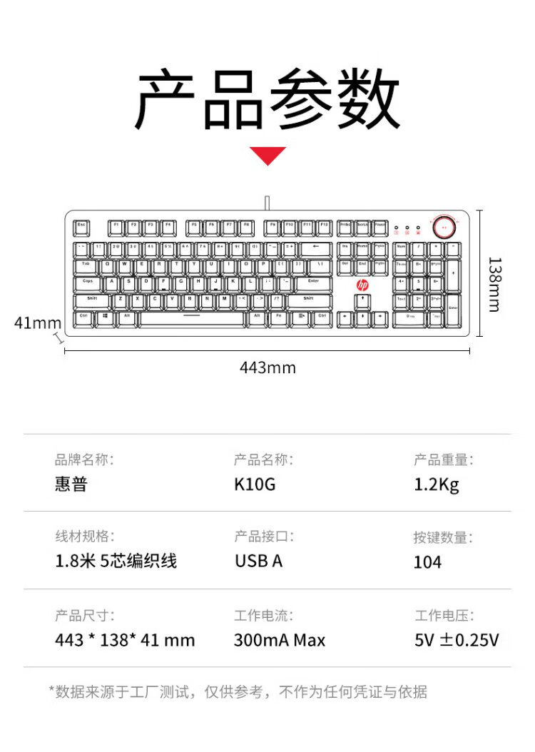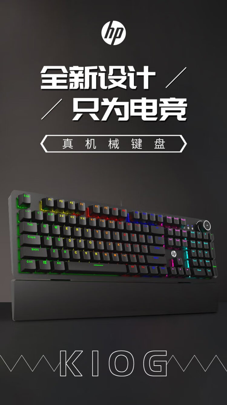 HP (HP) K10G true mechanical keyboard e-sports game lol chicken dedicated computer wired office 104-key hot-swappable full-key non-ghosting keyboard