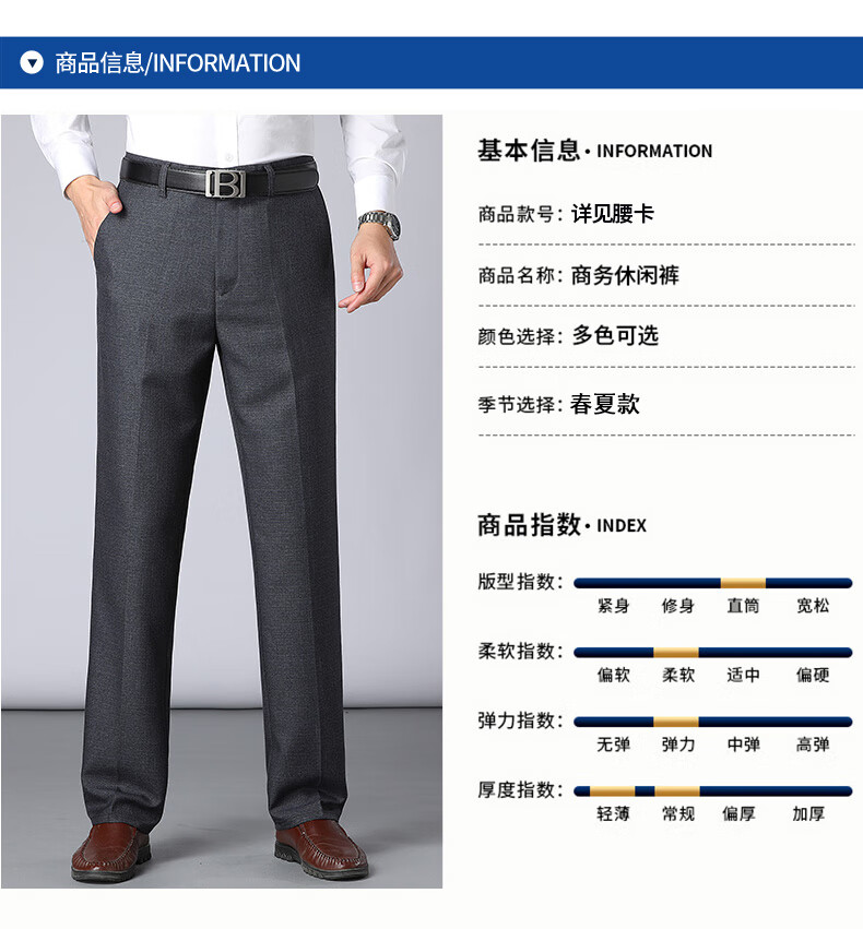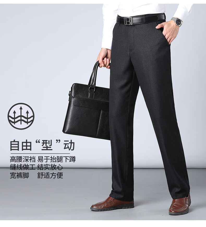 Yalu anti-wrinkle iron-free trousers men's mid-high waist business suit trousers autumn dad trousers suit straight trousers