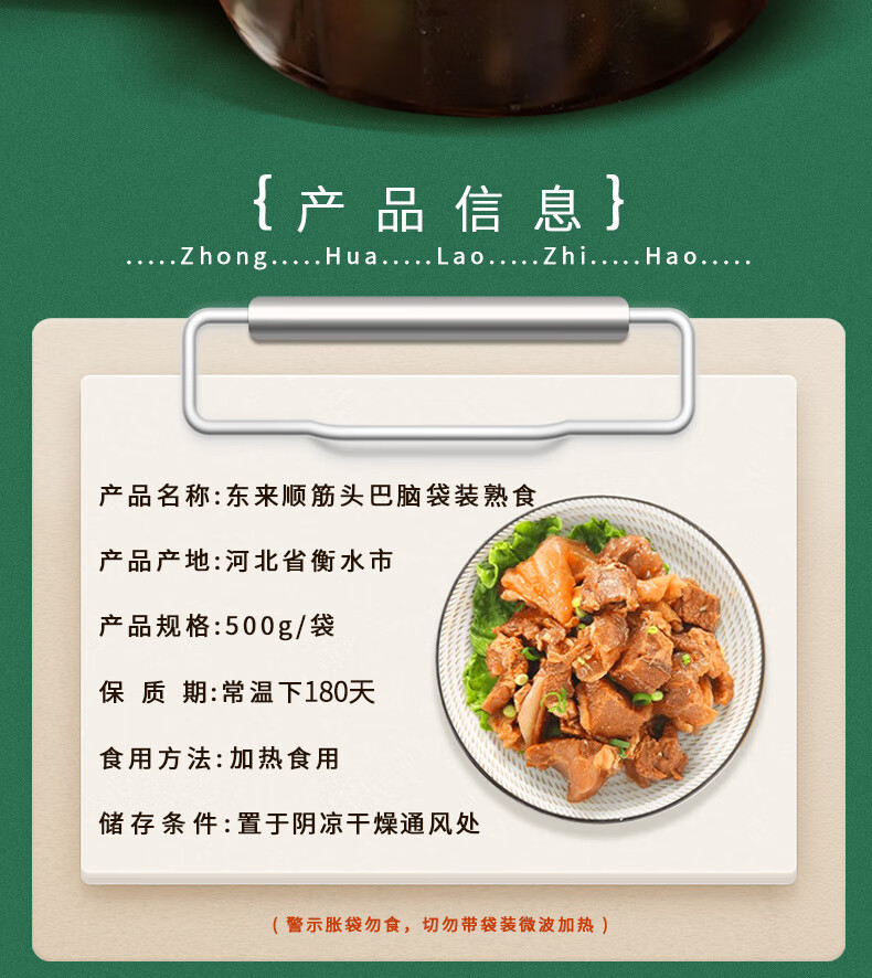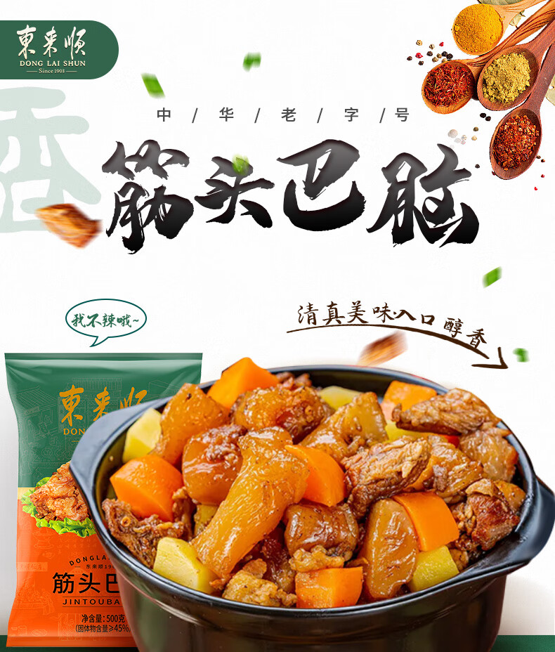 Dong Lai Shun Jin Tou Ba Nao 500g halal cooked food Chinese time-honored pre-made dishes heated ready-to-eat convenience dishes