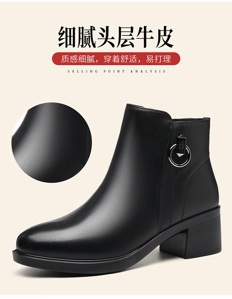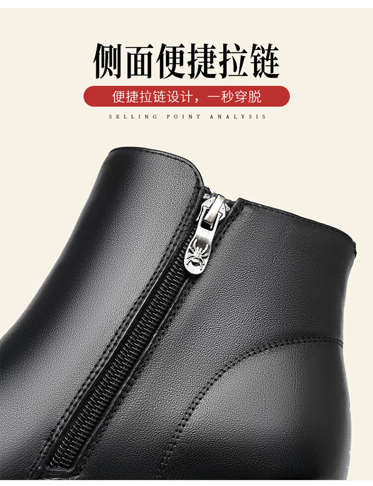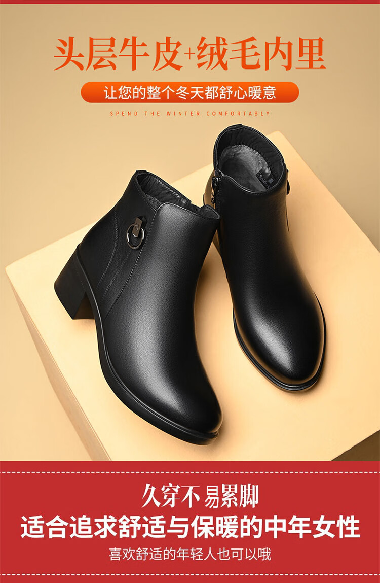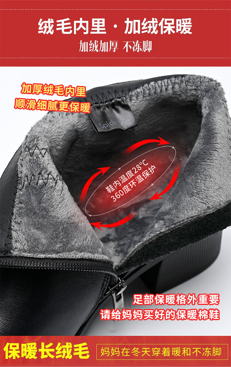 Spider King Women's Shoes Mom Cotton Shoes Women 2025 Winter Warm Plus Velvet Short Boots Middle-aged and Elderly Cotton Shoes Leather Shoes Women Black 38