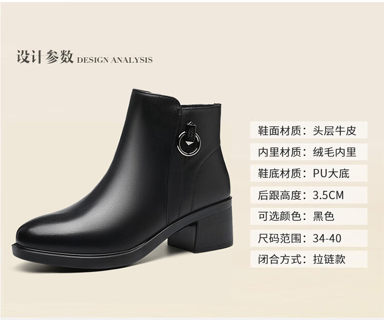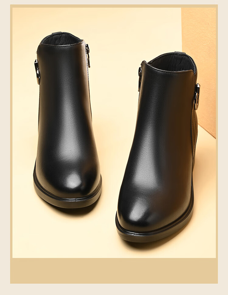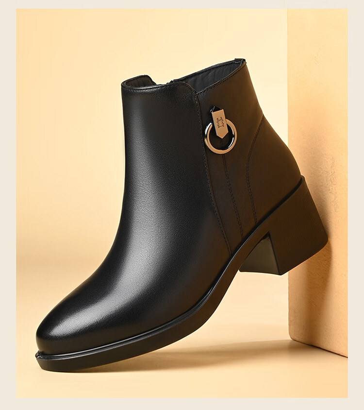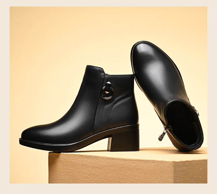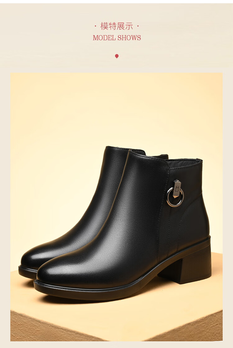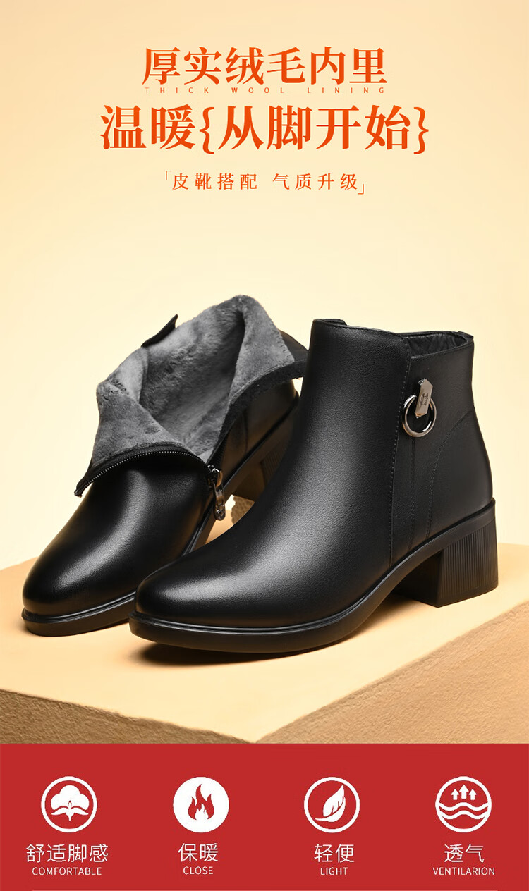 Spider King Women's Shoes Mom Cotton Shoes Women 2025 Winter Warm Plus Velvet Short Boots Middle-aged and Elderly Cotton Shoes Leather Shoes Women Black 38