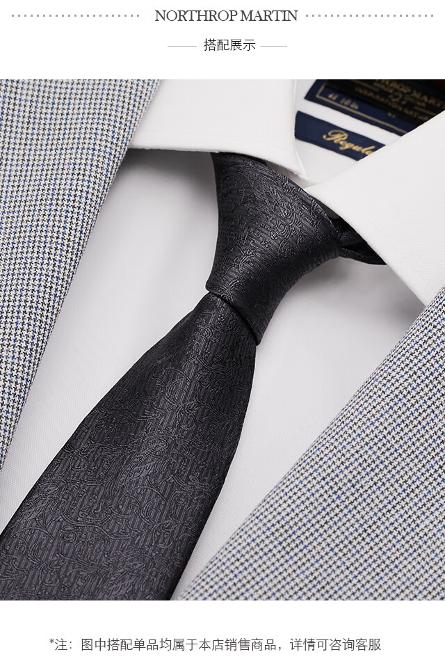 North Martin high-end silk tie men's business suit formal hand-dyed dark gray wedding 7cm high-end New Year gift