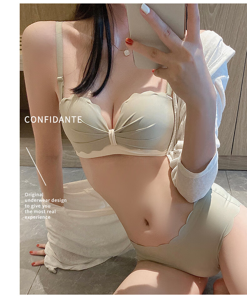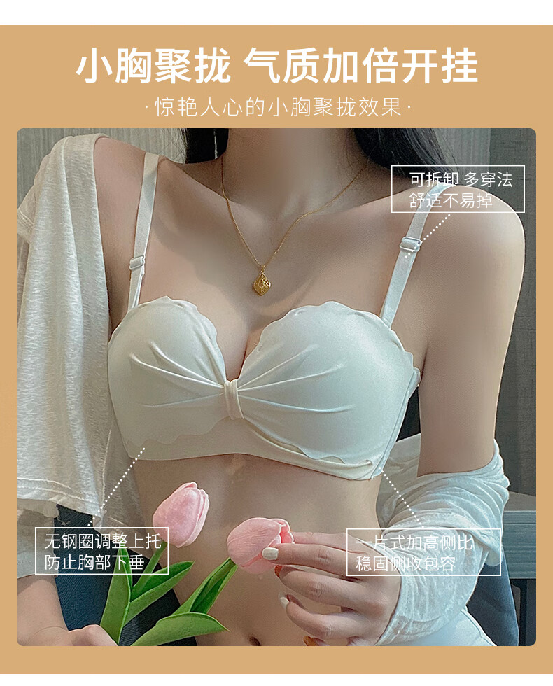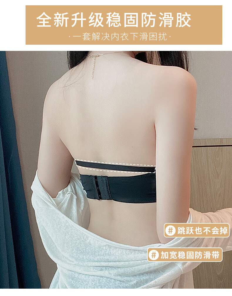 Langsha underwear women's strapless spring and summer non-slip bra without rims small breasts gathered pure desire sexy sexy side breasts wrapped chest