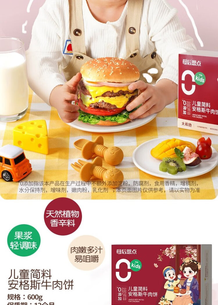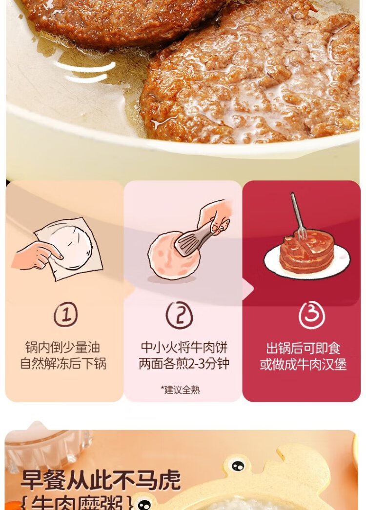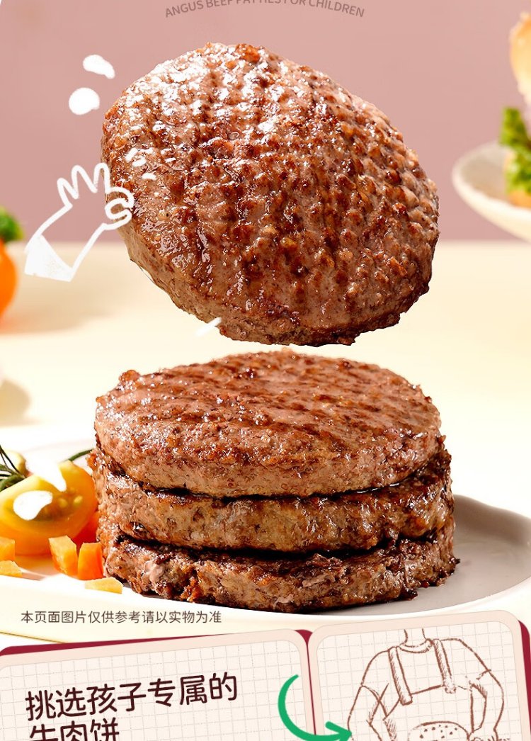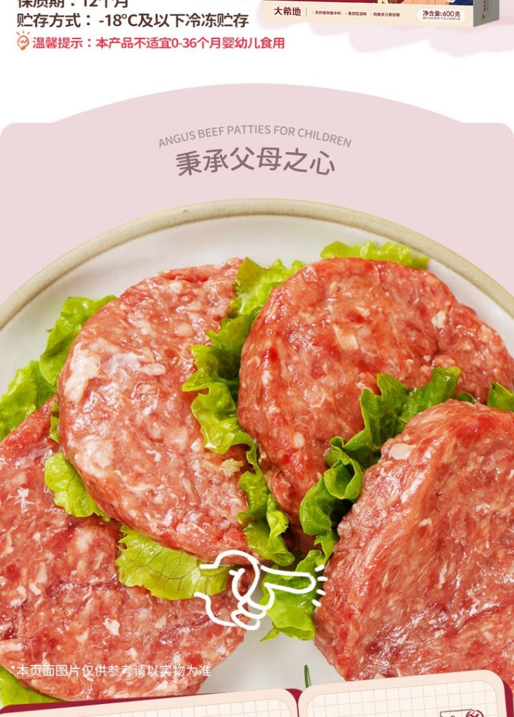 Daxi Dimu Houen's pickled and delicious children's breakfast Angus pure beef patty hamburger veal steak 600g (12 slices)