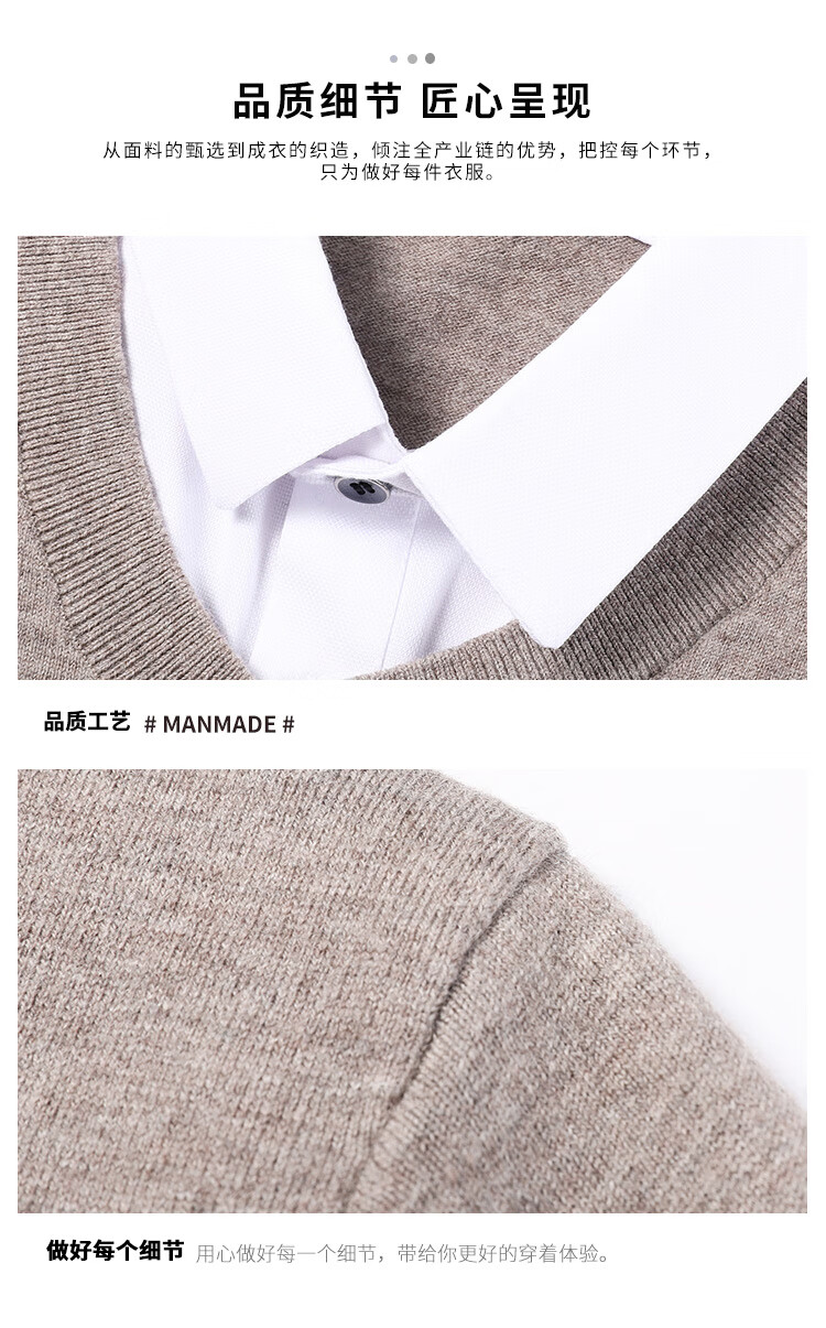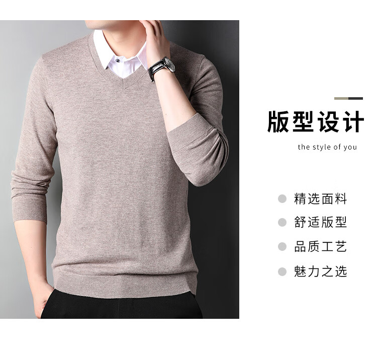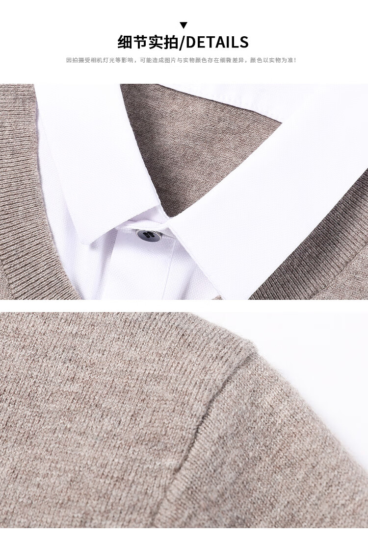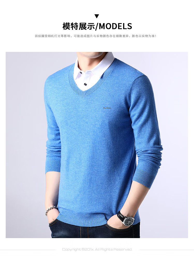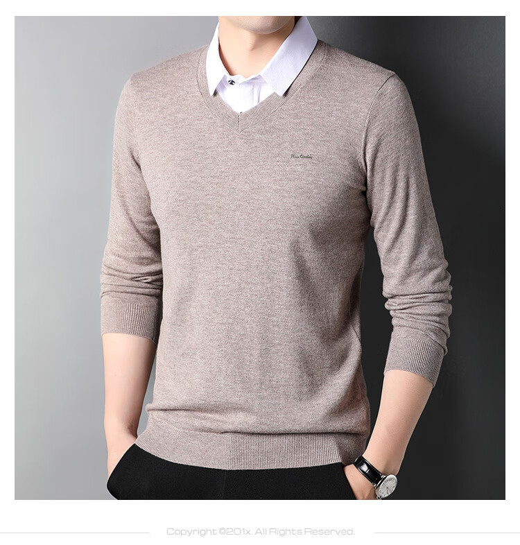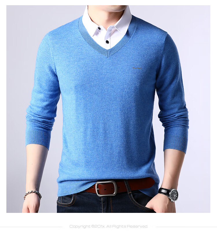 皮尔卡丹纯羊毛衫男士衬衫领假两件针织衫秋冬季100%羊毛线衣中年保暖毛衣