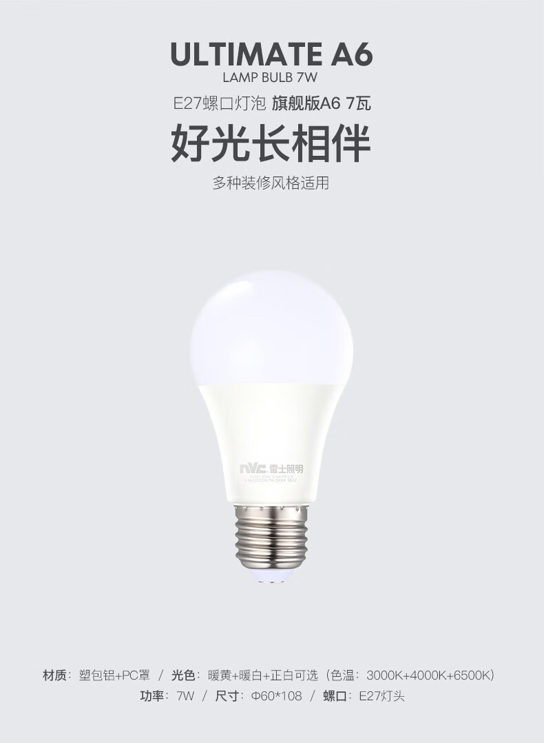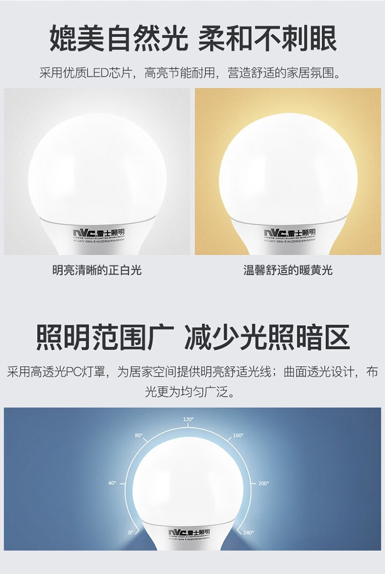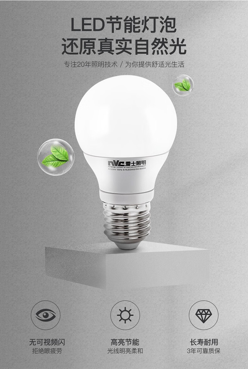 NVC Lighting (NVC) LED bulb energy-saving bulb bulb daily power light source single lamp E27 screw socket 1 piece 7W-4000K- warm white light