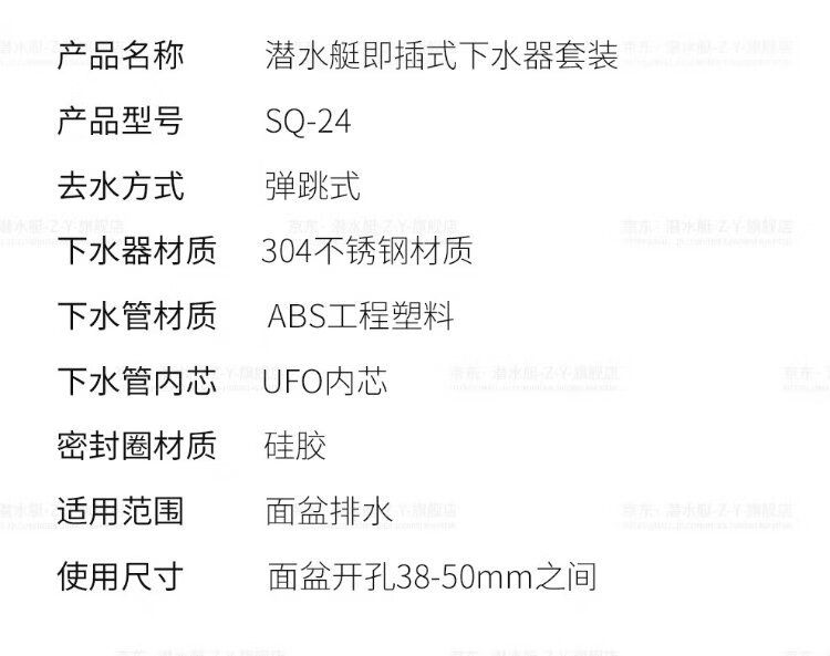 Submarine SQ-24 drain set basin bounce drain drain pipe anti-odor and anti-return odor with overflow port