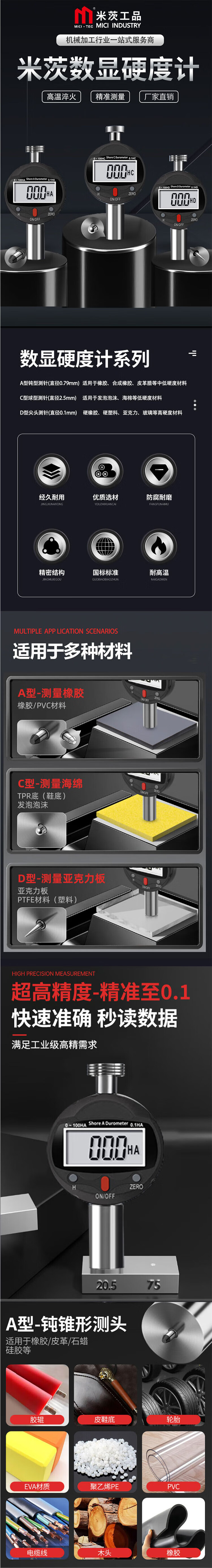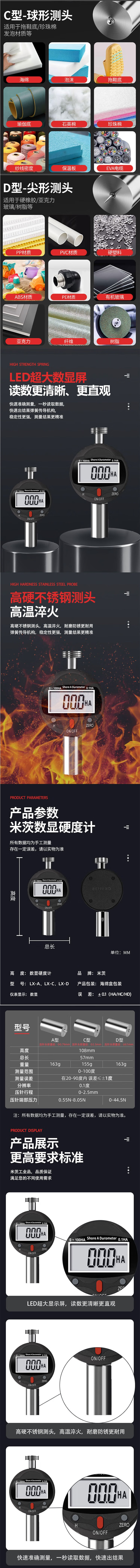 Mitzi Digital Shore Hardness Tester Type A Shore Hardness Tester Rubber/Foam/Hard Plastic LJ-SSYDJ-01 0-100HA/A
