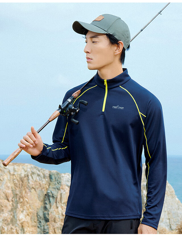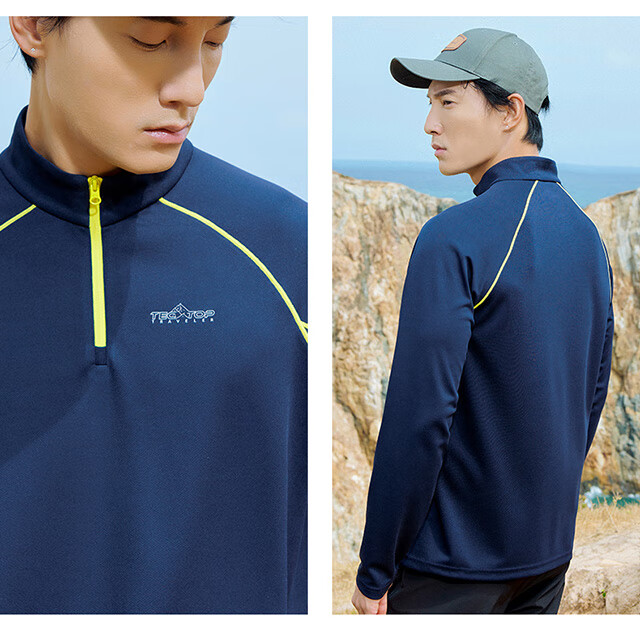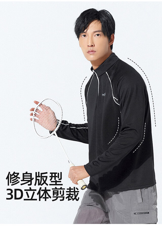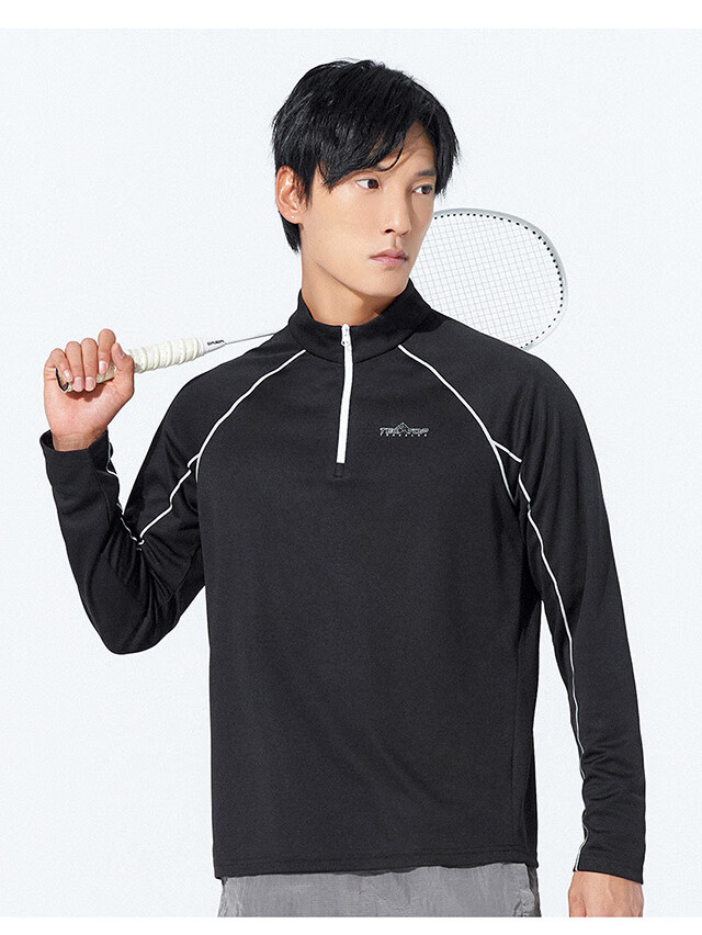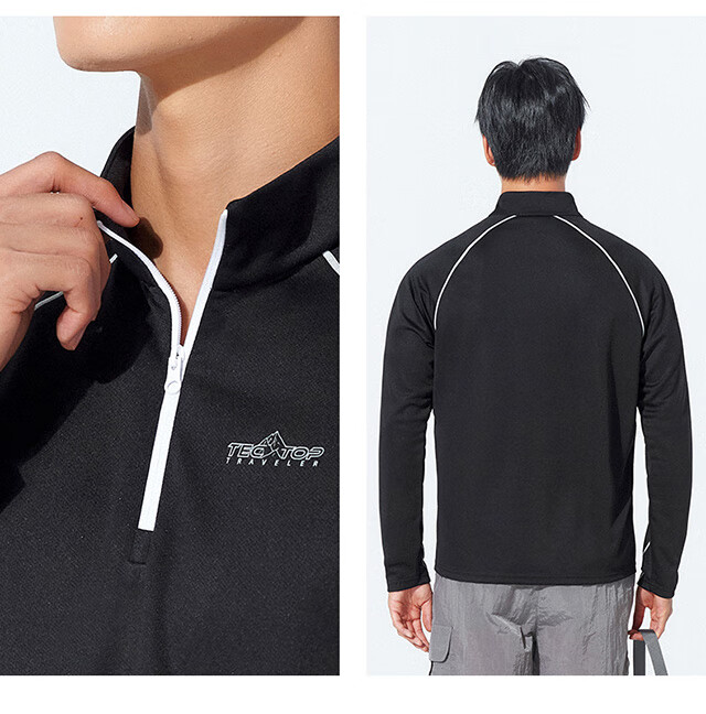 TECTOP quick-drying clothing men's outdoor stand-up collar breathable running elastic long-sleeved T-shirt reflective cycling clothing 035 men's black L