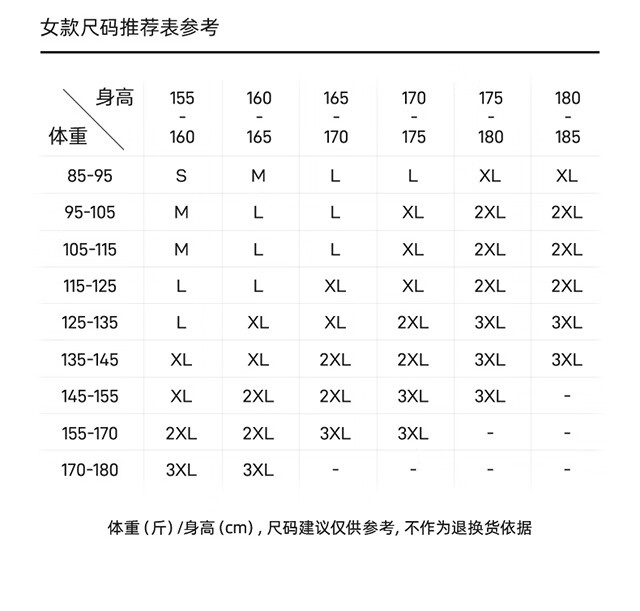 China (cm) 160-165/84-86 165-170 / 88-90 167-172 / 92-96 168-173 / 98-102 170-176 / 106-110