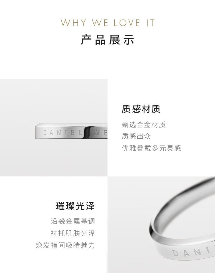 Daniel Wellington dw ring for women, classic series couple ring, elegant silver No. 58, birthday gift for girlfriend DW032