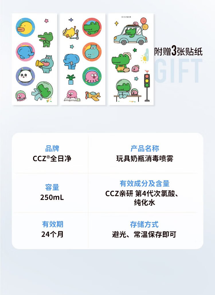 CCZ all-day net hypochlorous acid disinfection spray A influenza killing no-wash sterilization toy bottle disinfectant 250mL