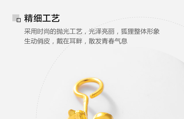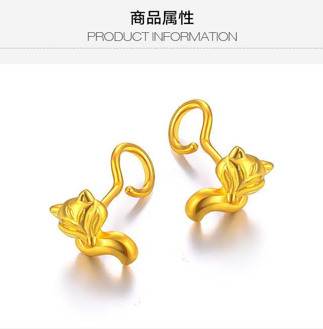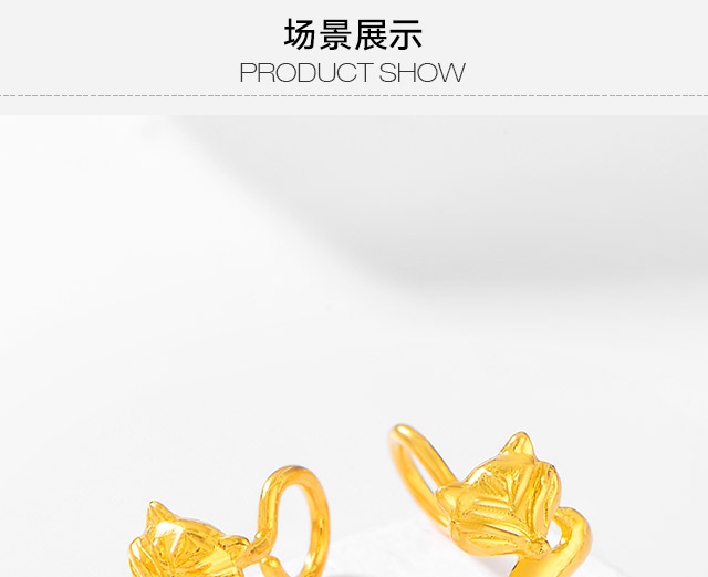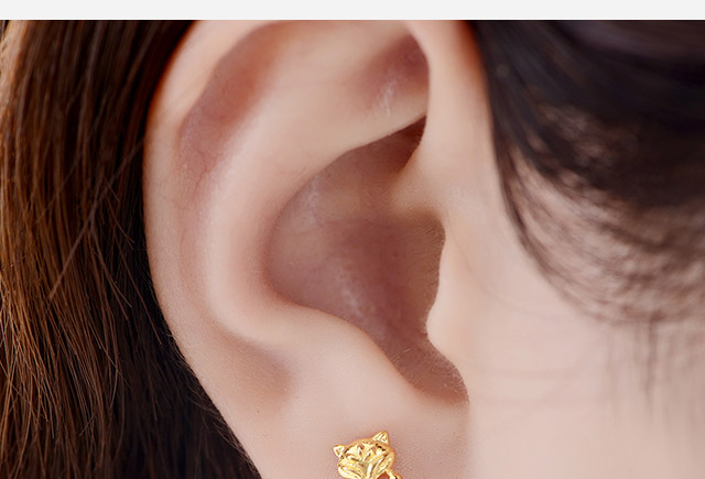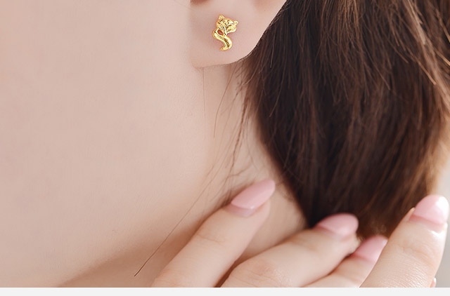 Safir gold earrings for women pure gold 999.9 cute fox earrings ear hook earrings about 1.55 grams