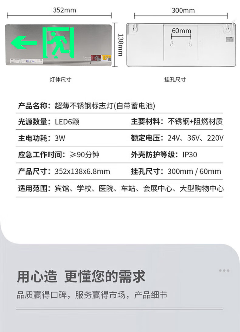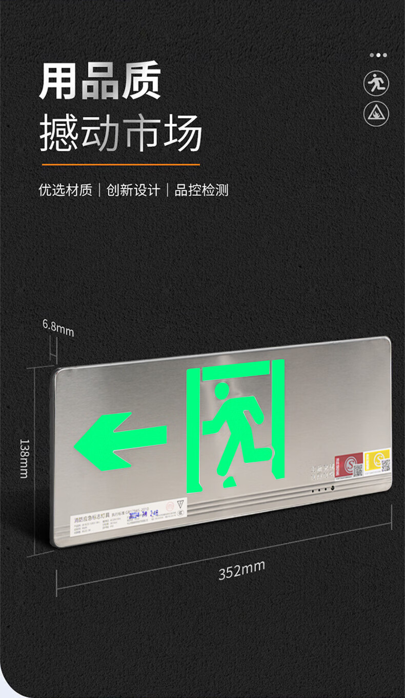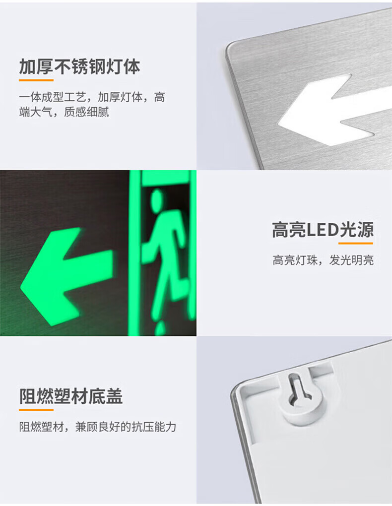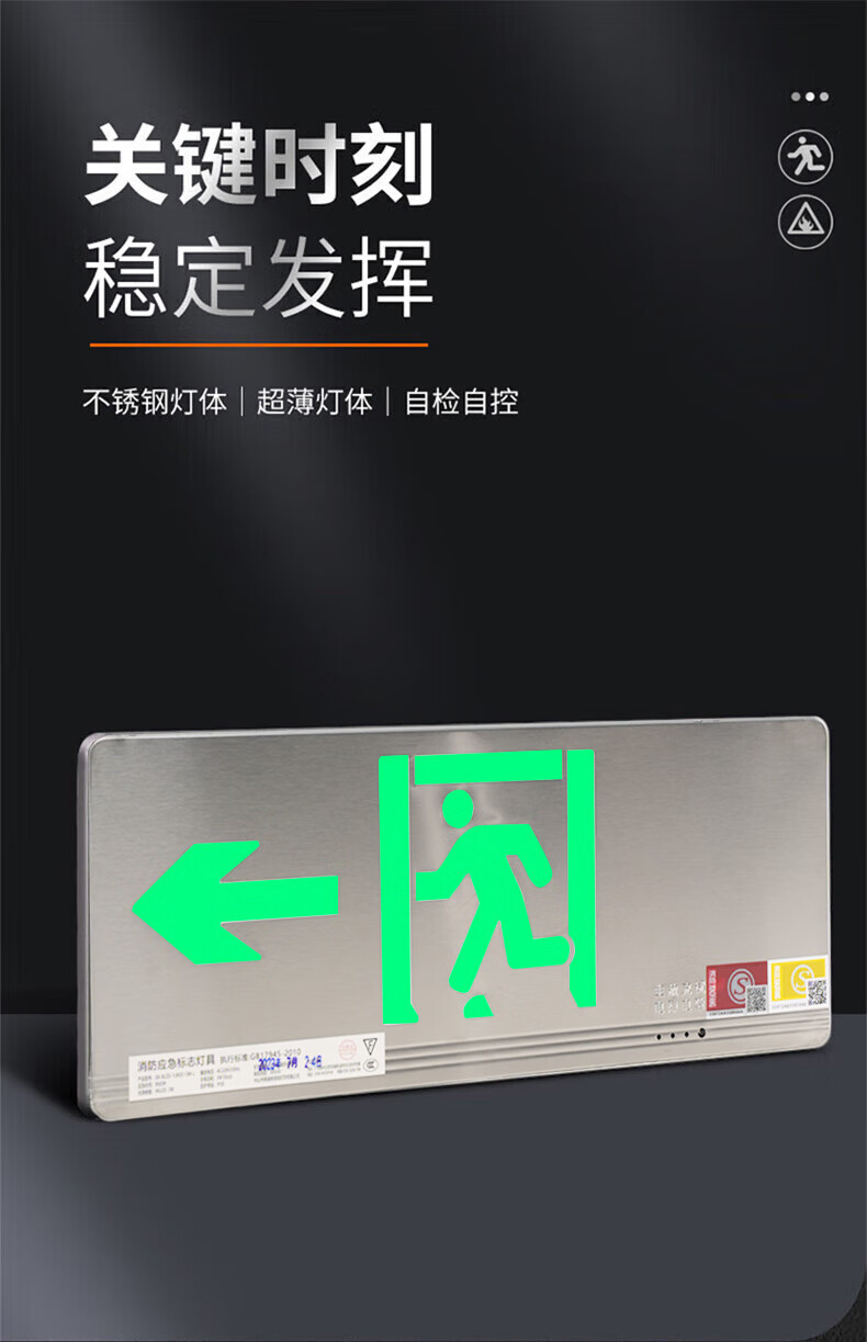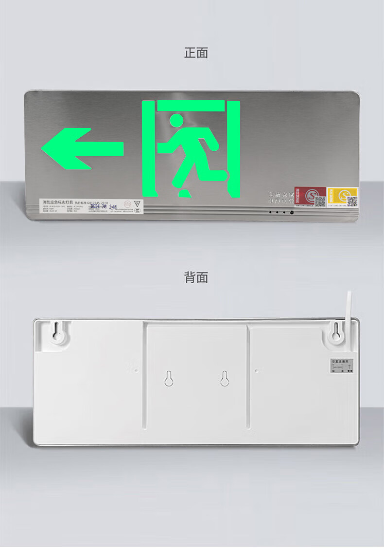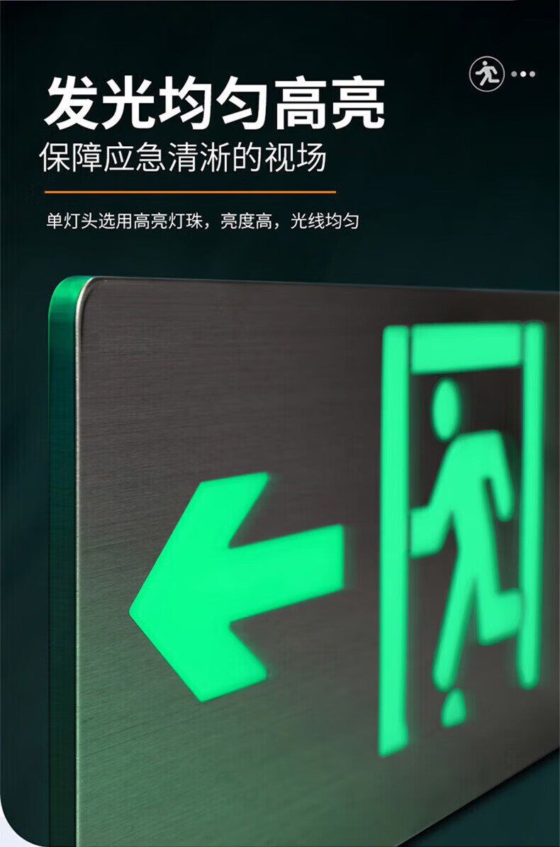 Shengu stainless steel safety exit sign, single-sided left-facing 24V-220V ultra-thin fire emergency evacuation sign light