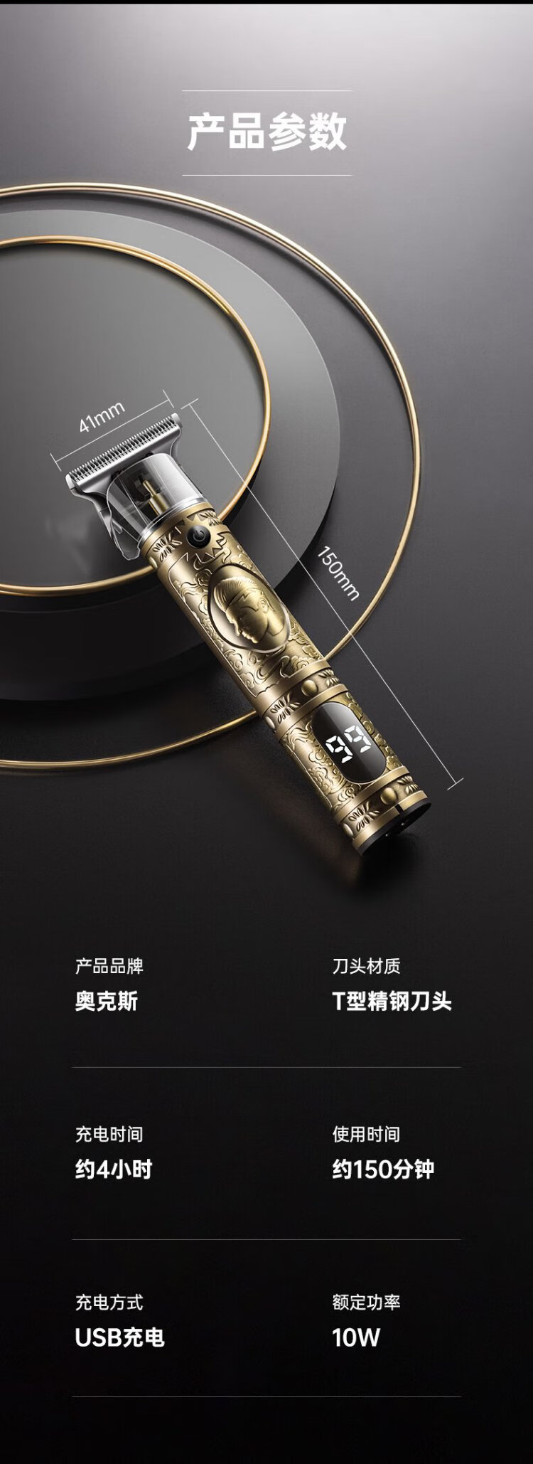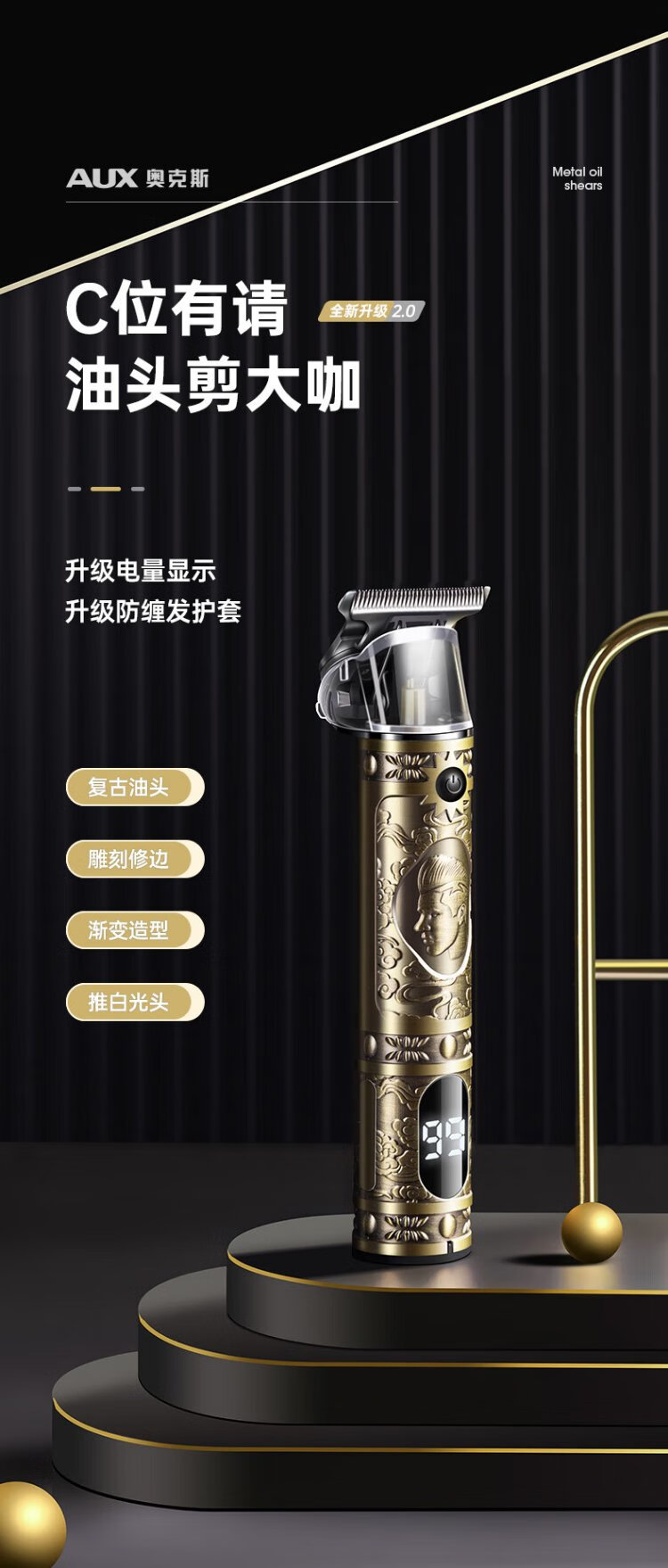 AUX shaving hair clipper electric adult hair clipper bald artifact hair clipper oil head carving electric clipper complete set of hair cutting tools with gold LCD screen