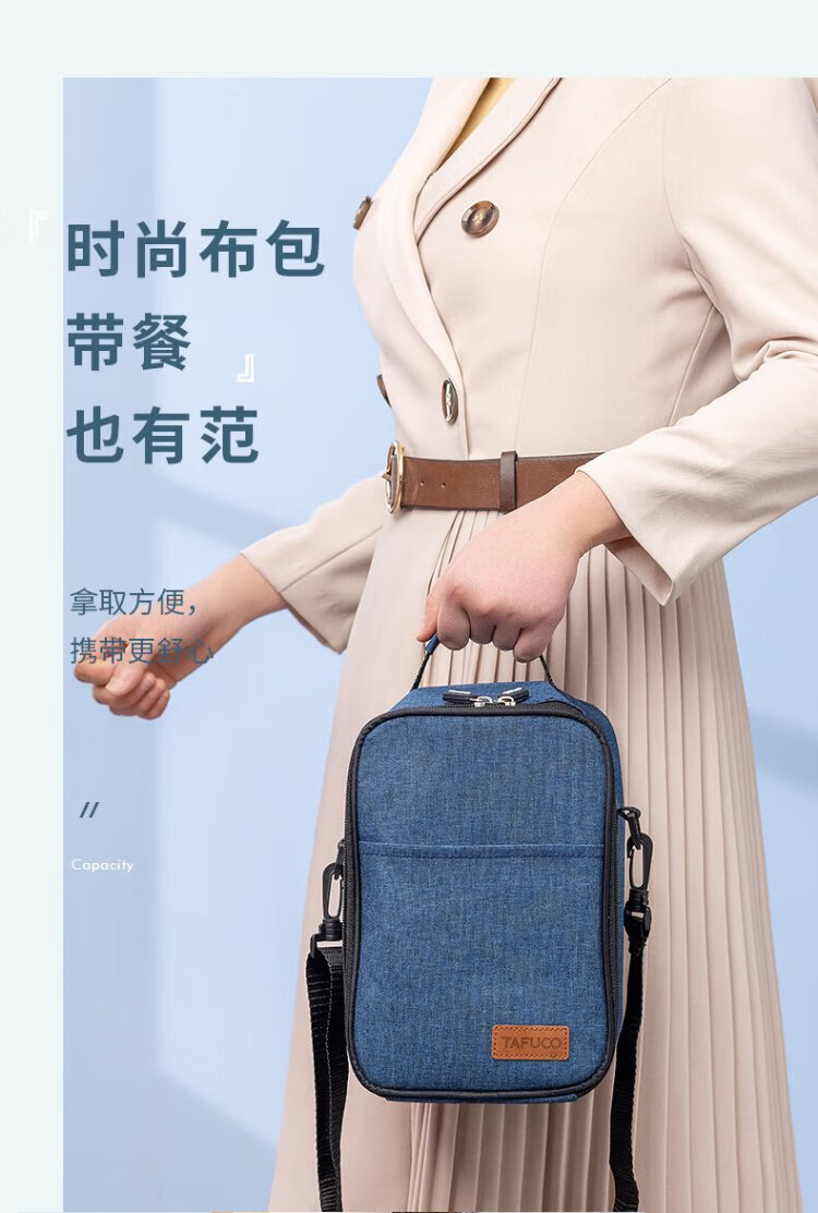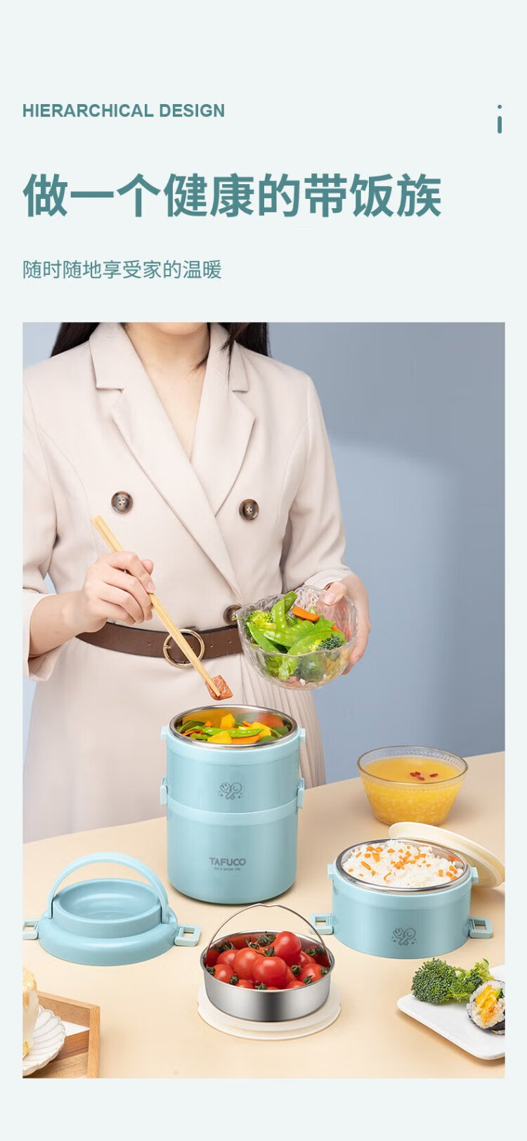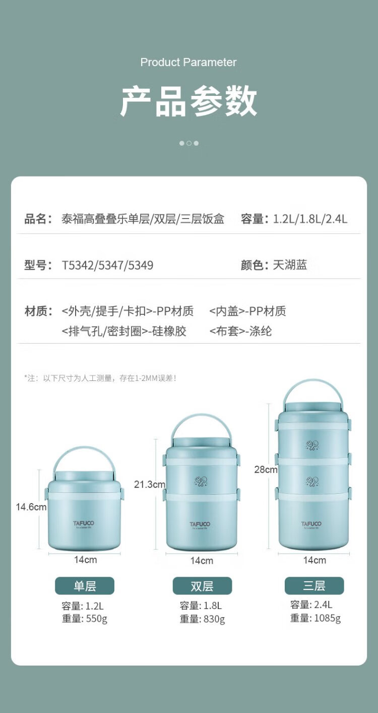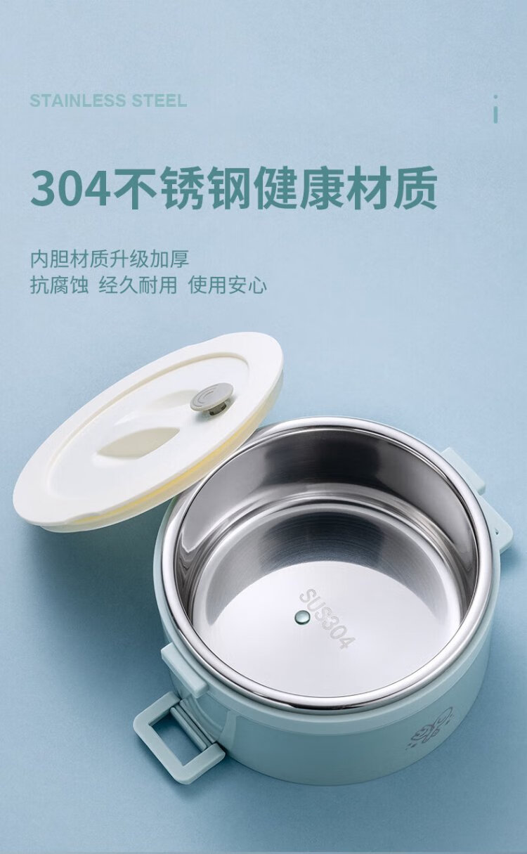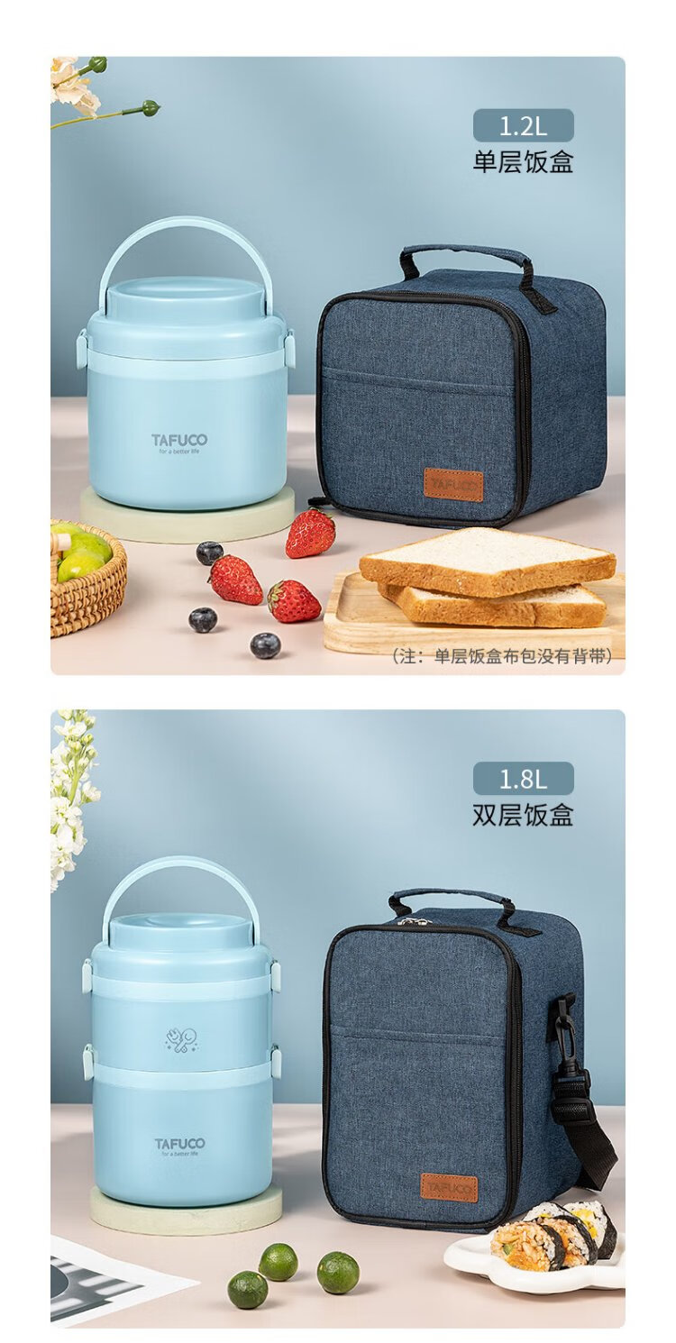 TAFUCO student lunch box 304 stainless steel work divider large capacity three-layer dinner plate 2.4L-Tianhu Blue-T5349