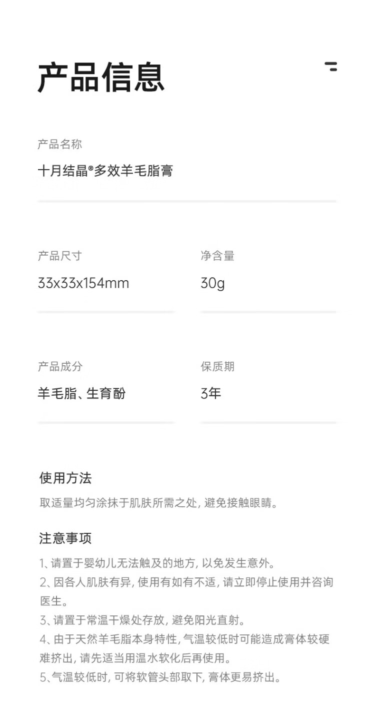 October Crystallized Lanolin Cream Nipple Cream Repair Cream Chapped Cream Pregnant Women Nipple Cream Lactation Skin Care Products Lanolin Cream 30g