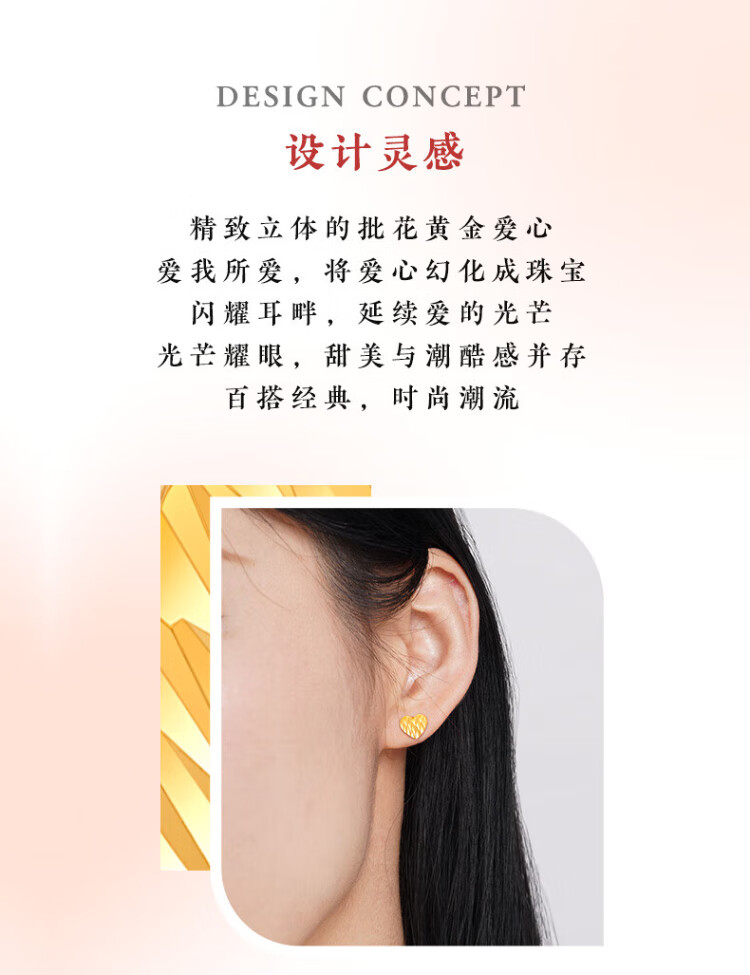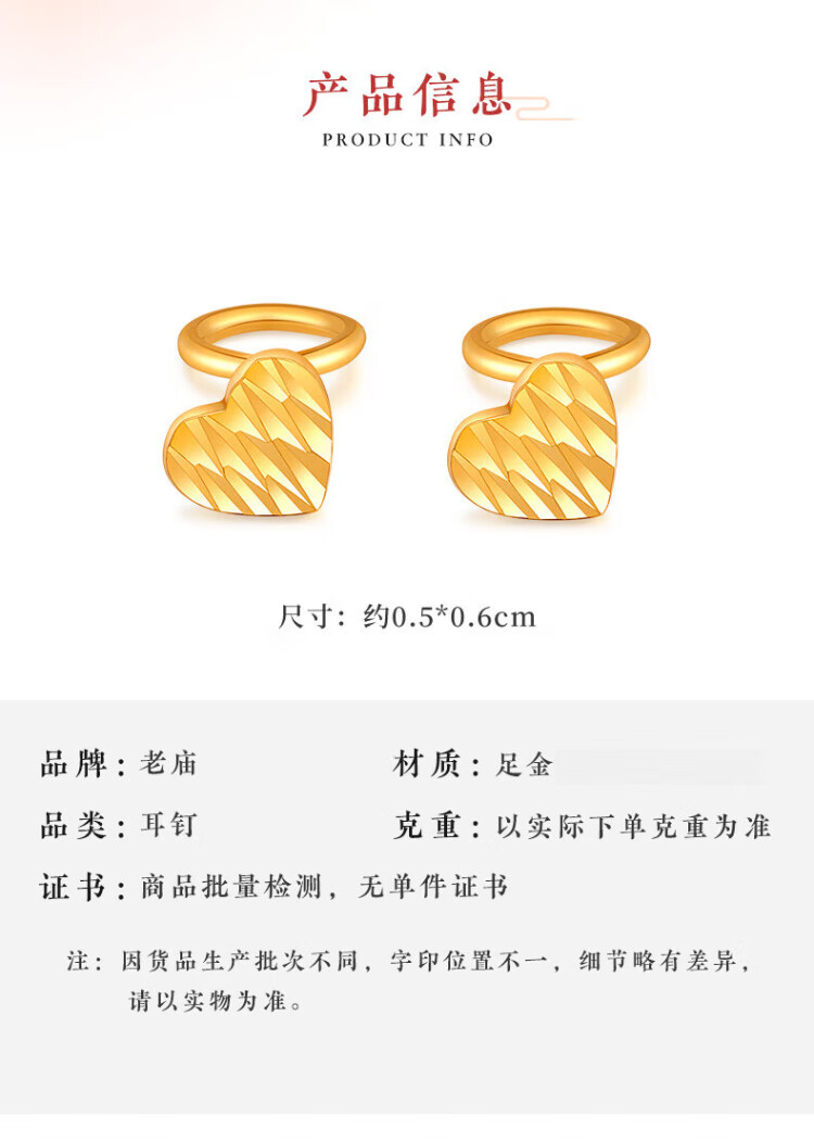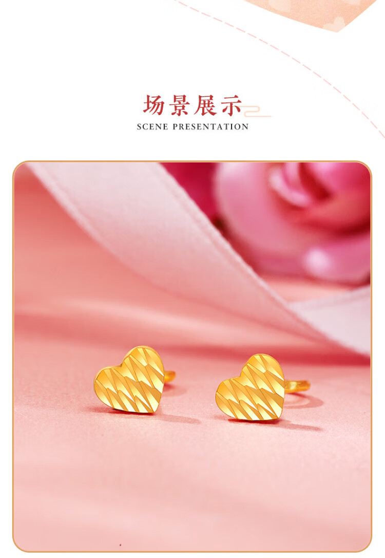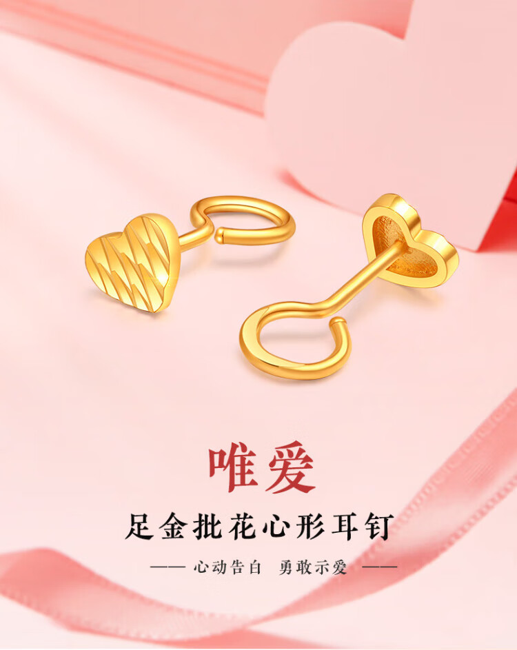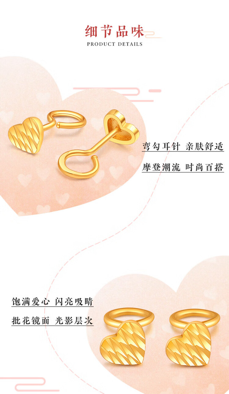 Old temple gold earrings pure gold love earrings, versatile for commuting, birthday gift for girlfriend