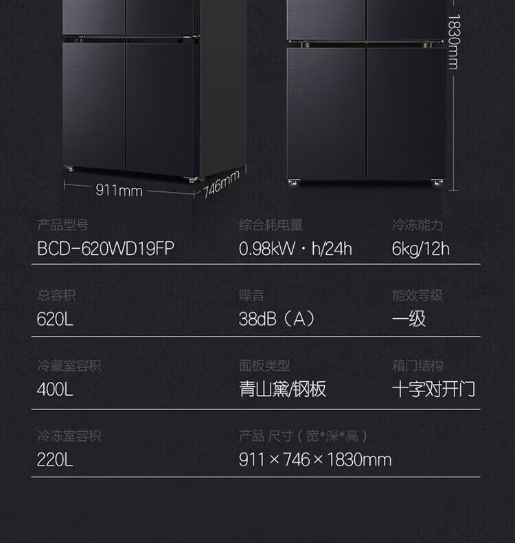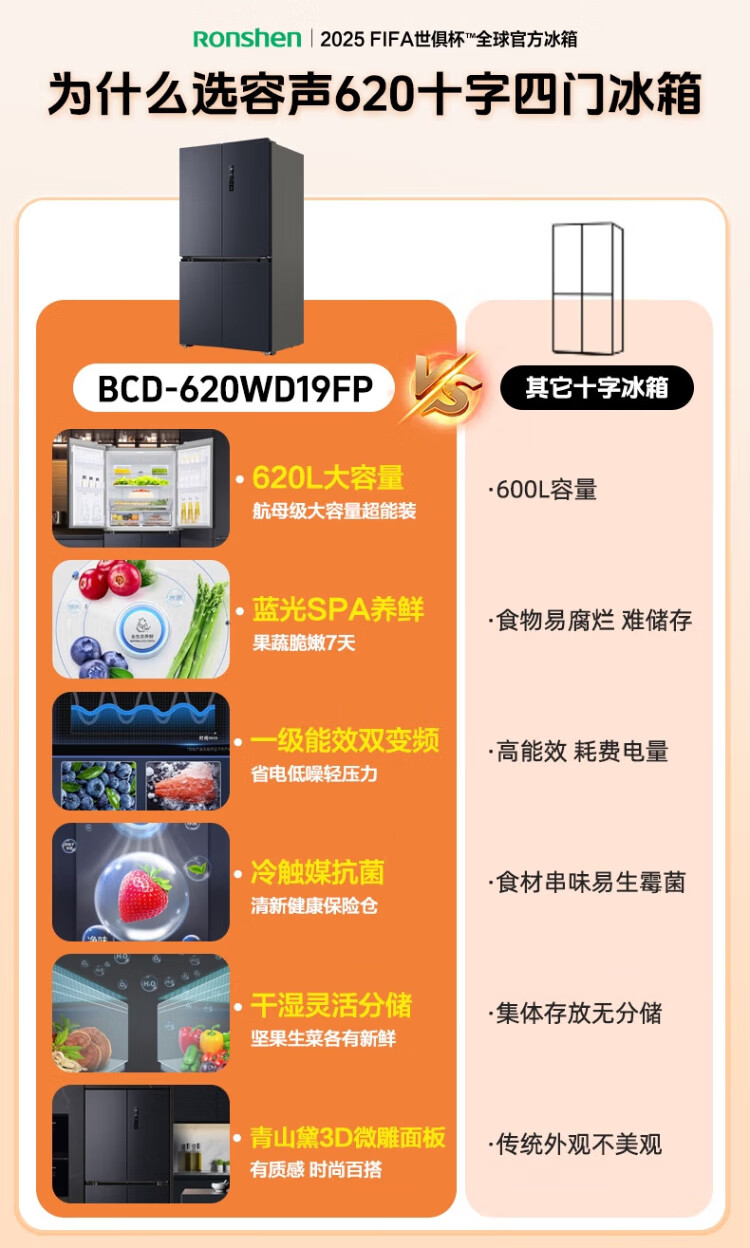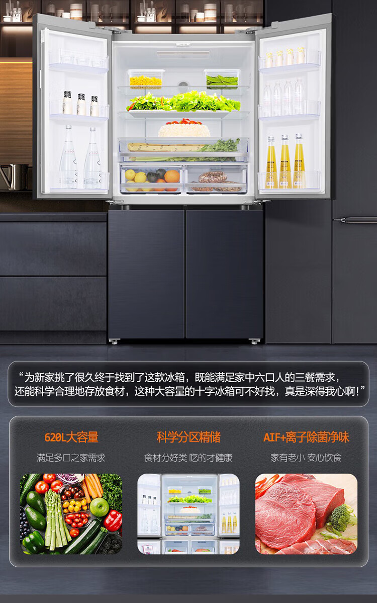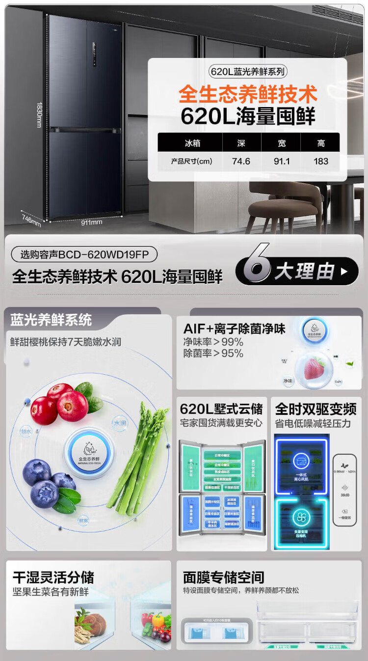 Ronshen refrigerator 620 liters AIF clean flavor cross four-door frequency conversion energy-saving refrigerator first-class energy efficiency BCD-620WD19FP Ronshen 526up ultra-large capacity