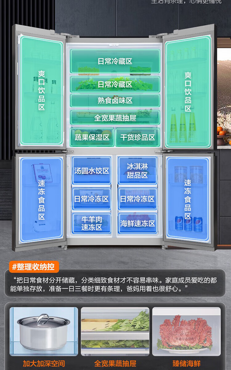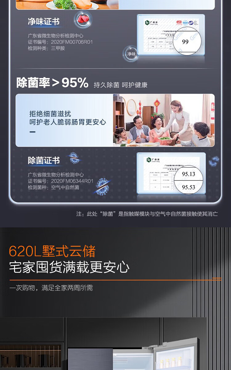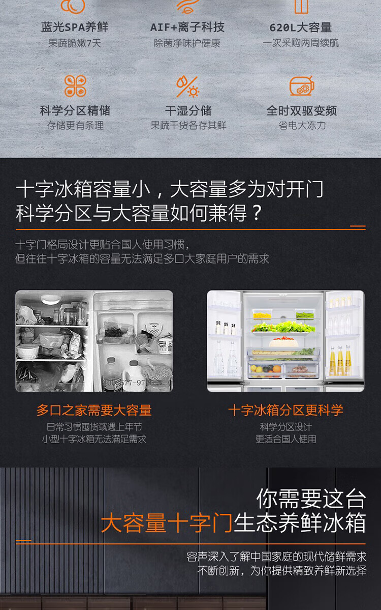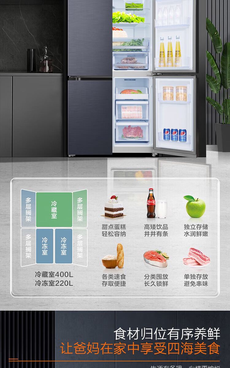 Ronshen refrigerator 620 liters AIF clean flavor cross four-door frequency conversion energy-saving refrigerator first-class energy efficiency BCD-620WD19FP Ronshen 526up ultra-large capacity