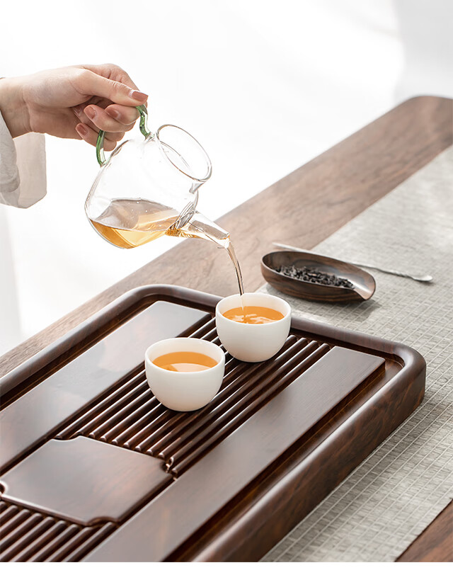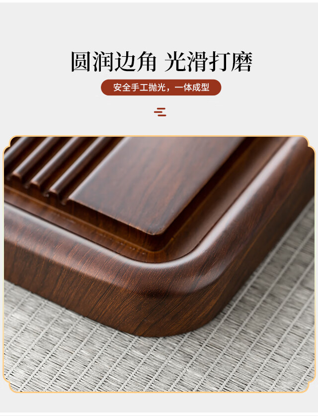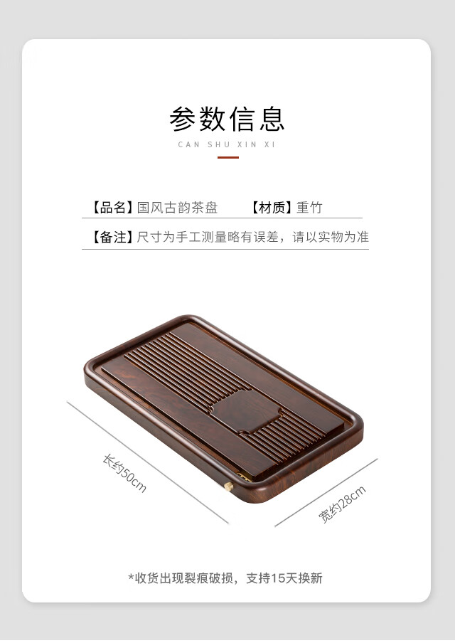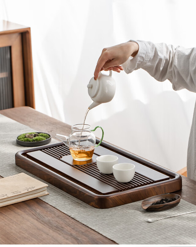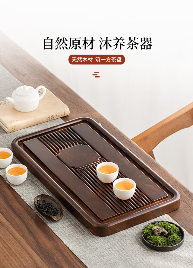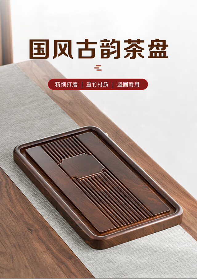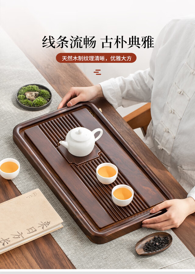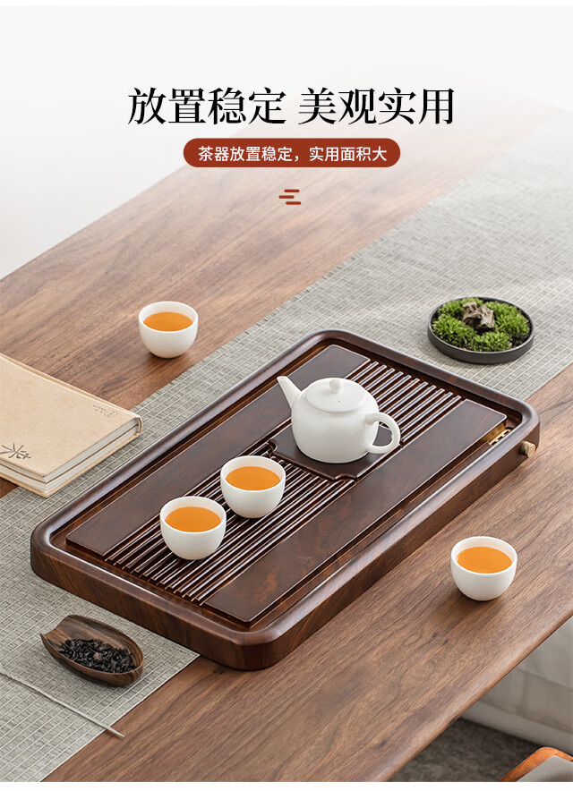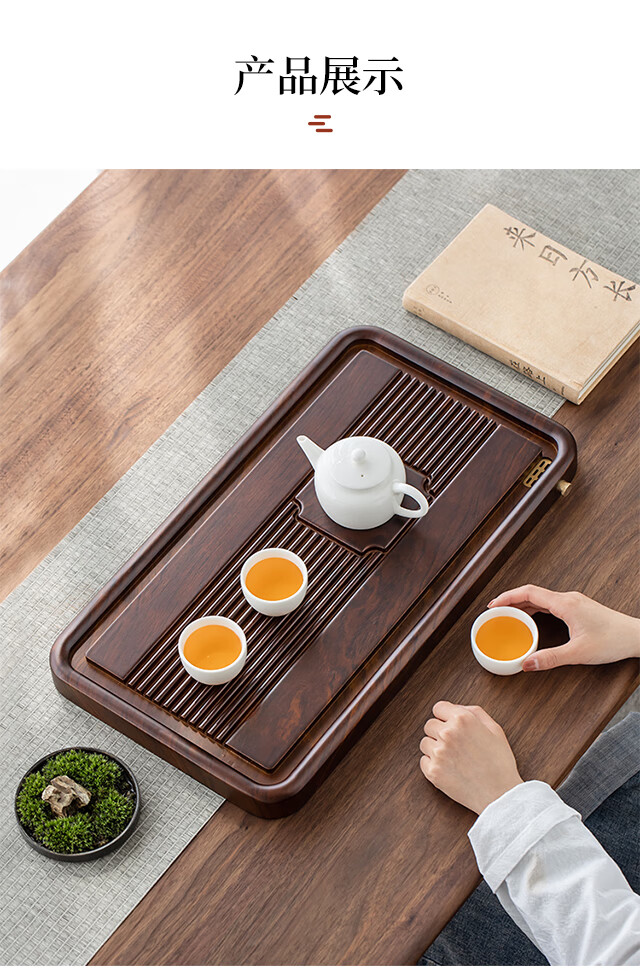 Gold inlaid jade solid wood bamboo tea tray tea tray dry soaking drainage simple household tea table large ancient charm 50*28cm
