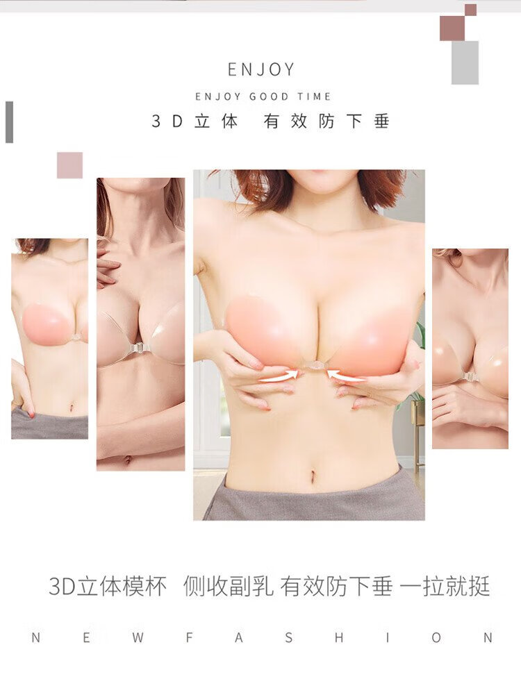 FitonTon invisible silicone breast patch strapless underwear women's push-up front buckle seamless anti-bump breast patch wedding dress invisible bra B
