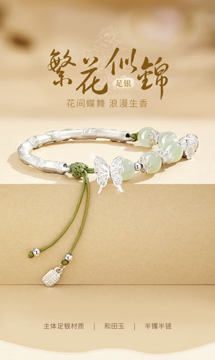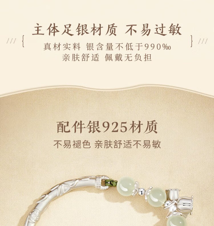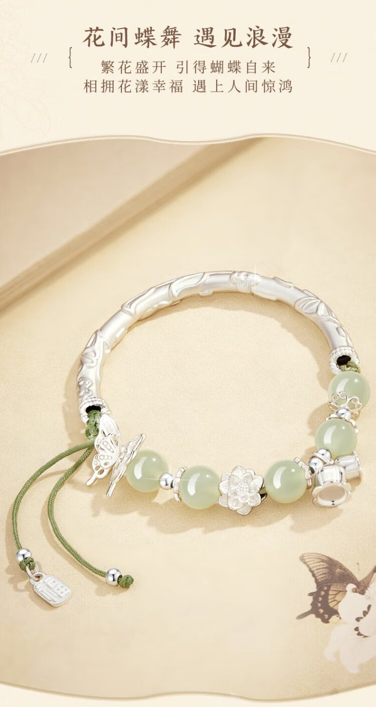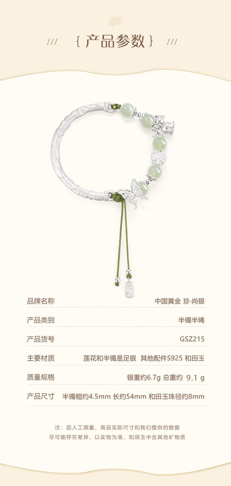 Zhen Shang Silver Chinese Gold Authorized Flower Full Silver Bracelet Solid Bracelet Female Birthday Gift Anniversary for Girlfriend and Wife