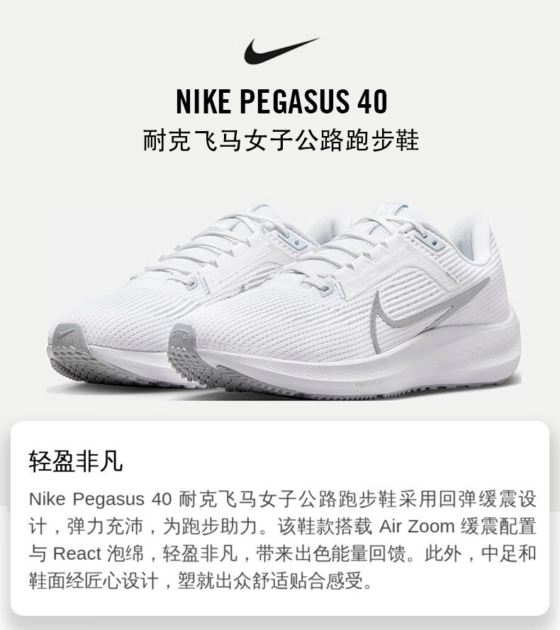 Nike NIKE running shoes women's Pegasus 40 air cushion PEGASUS 40 sports shoes DV3854-101 white 36.5