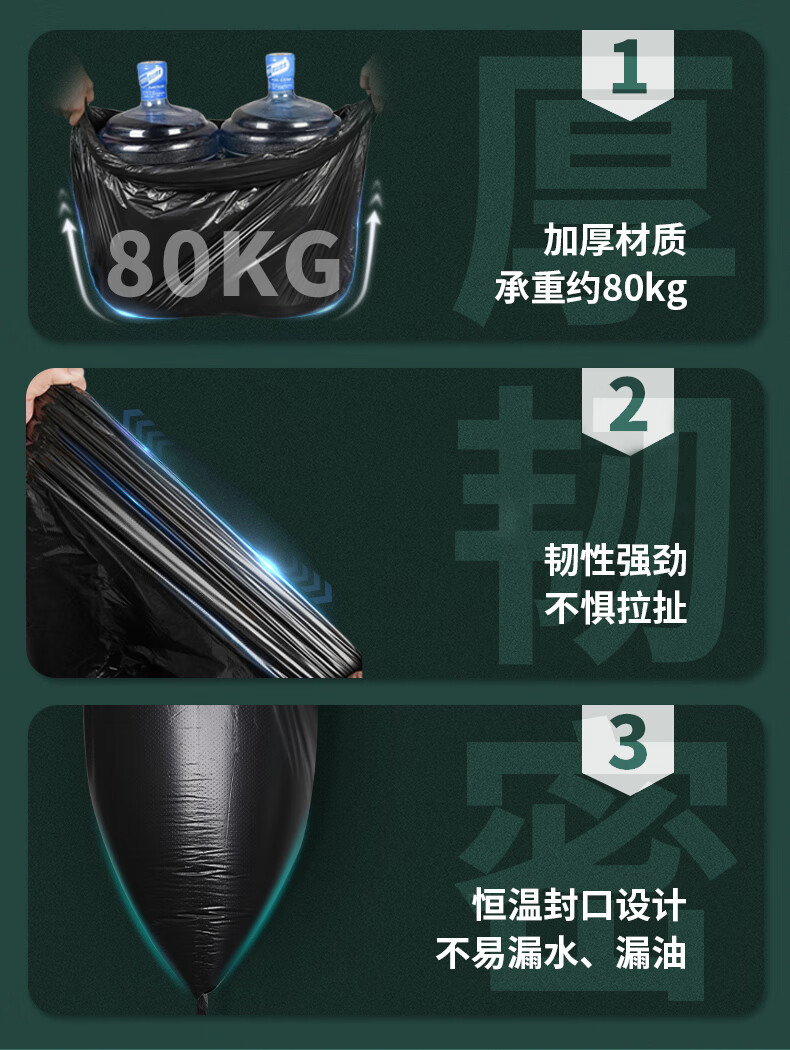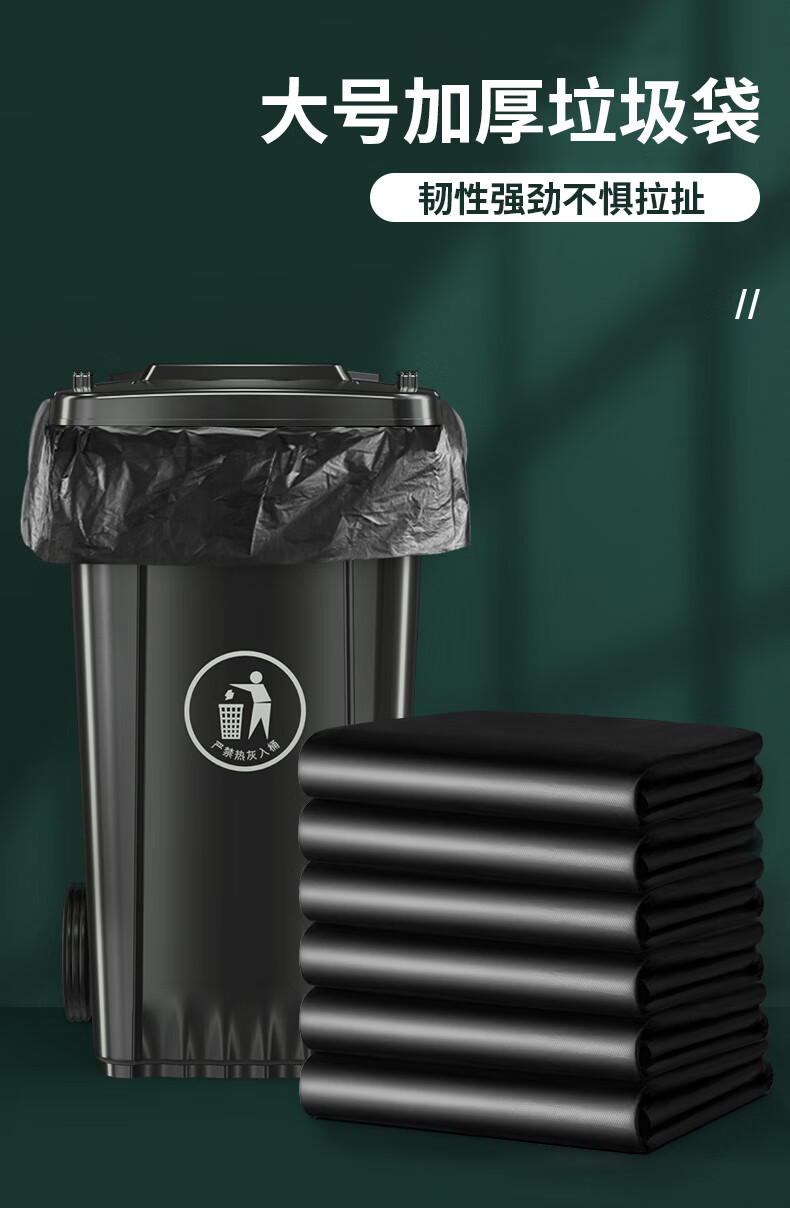 Cleapon Property Garbage Bag Thickened Flat Mouth Disposable Plastic Bag Commercial Property Office Home Thickened Extra Large Black 80*100 2.6 Silk 50 Pack CL4002