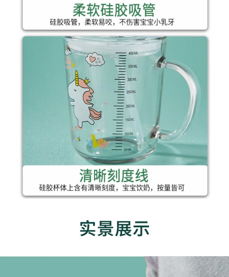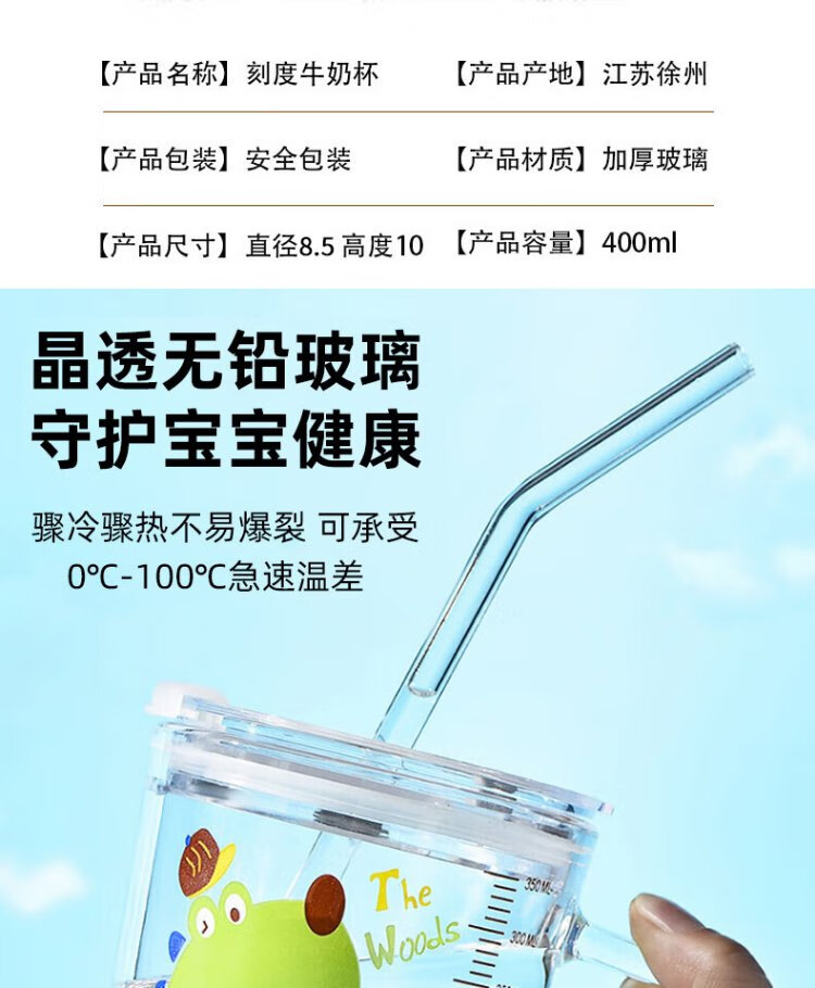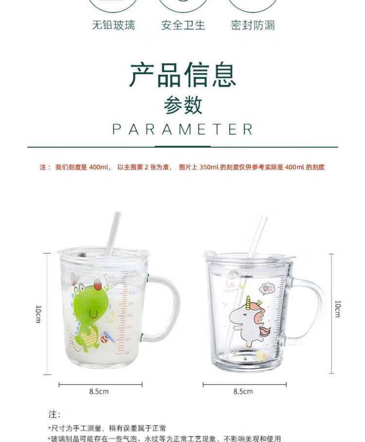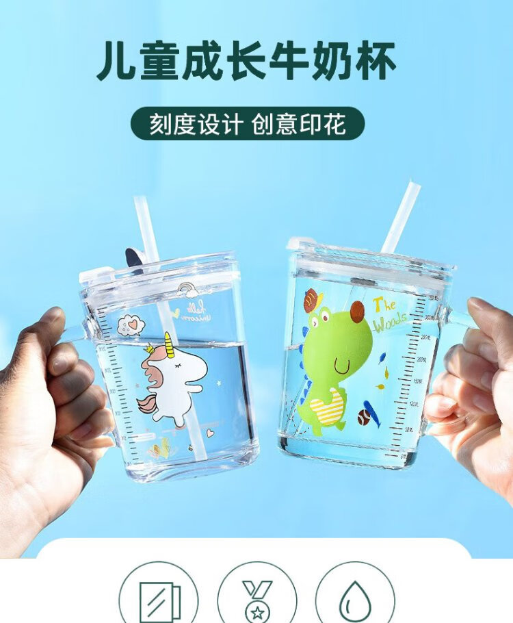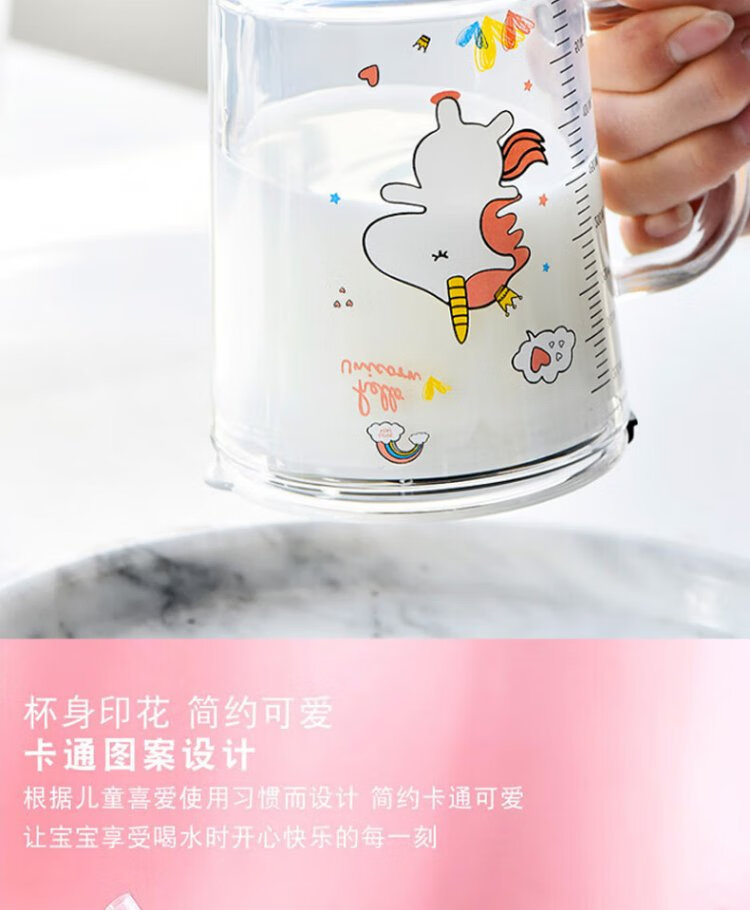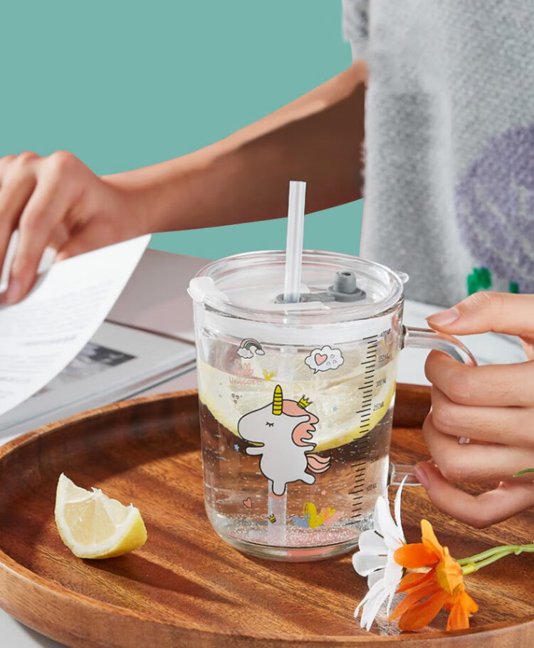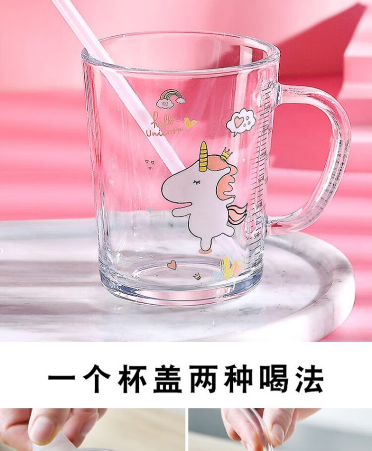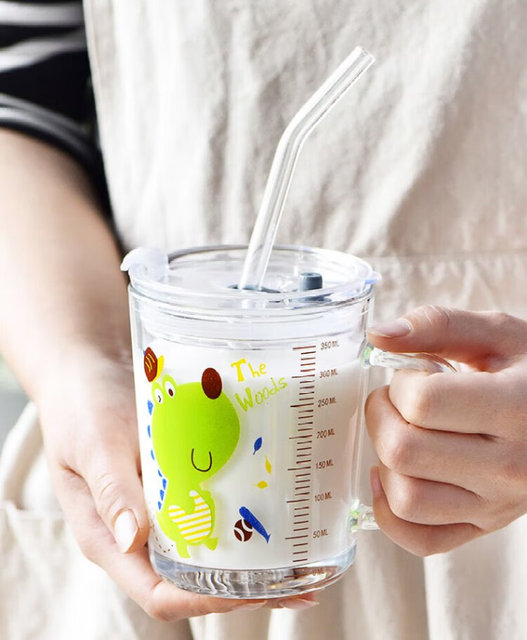 Dipur scale milk cup, children's sippy cup, student water cup, glass cup with lid, cute drinking cup, teacup with handle