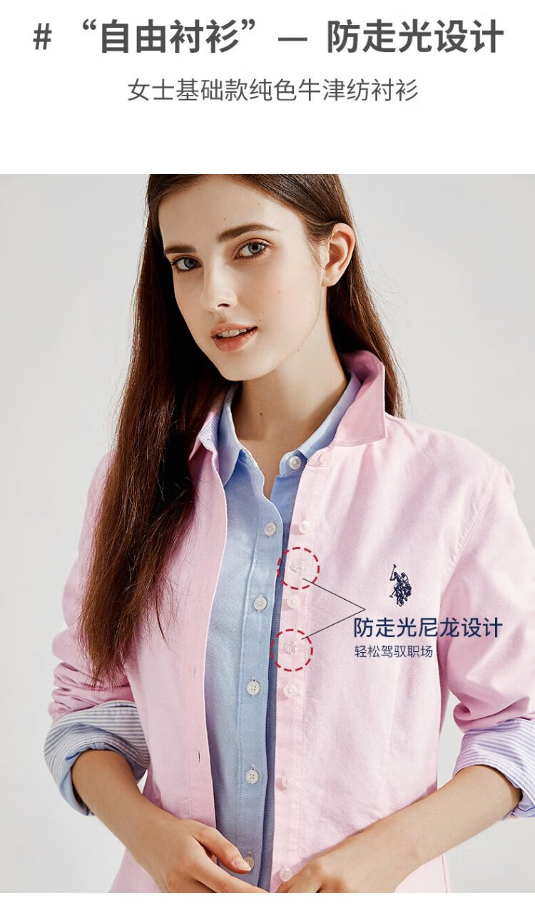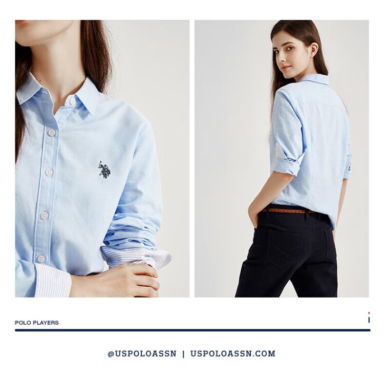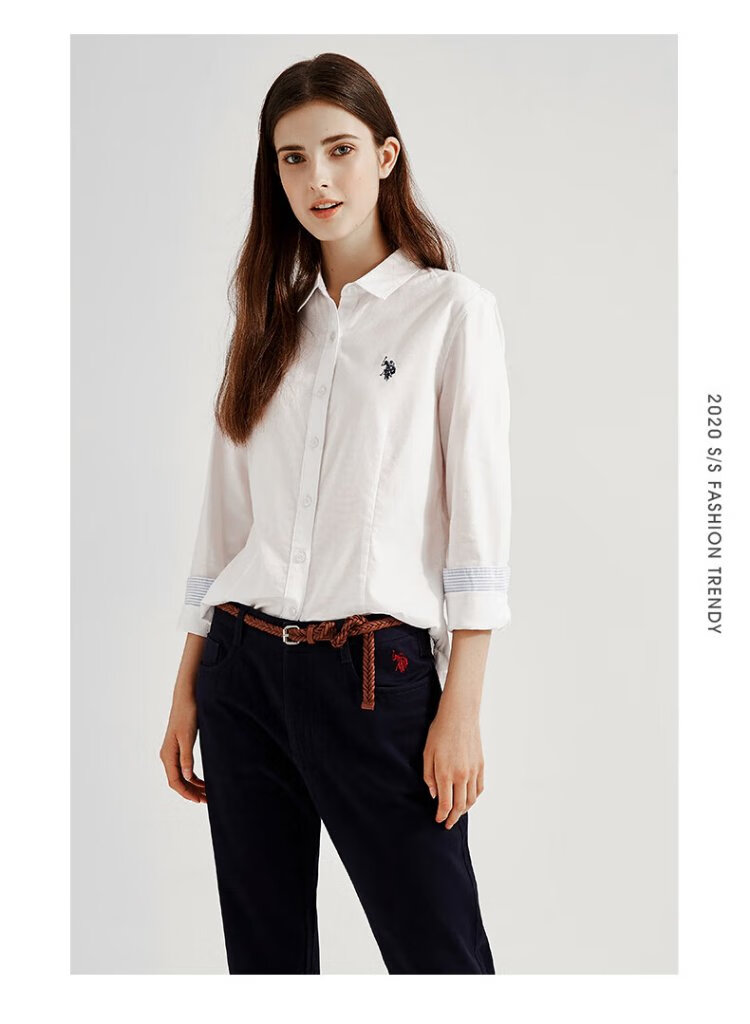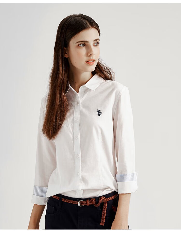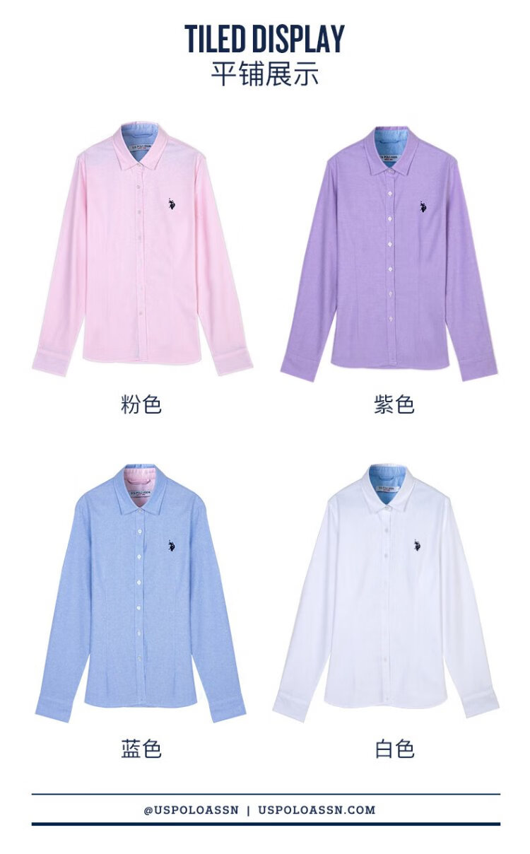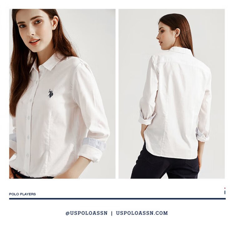 U.S. POLO ASSN. Long-sleeved shirt for women, solid color, anti-exposure, business casual, pure cotton white shirt, spring and autumn commuting lapel, women's coat top