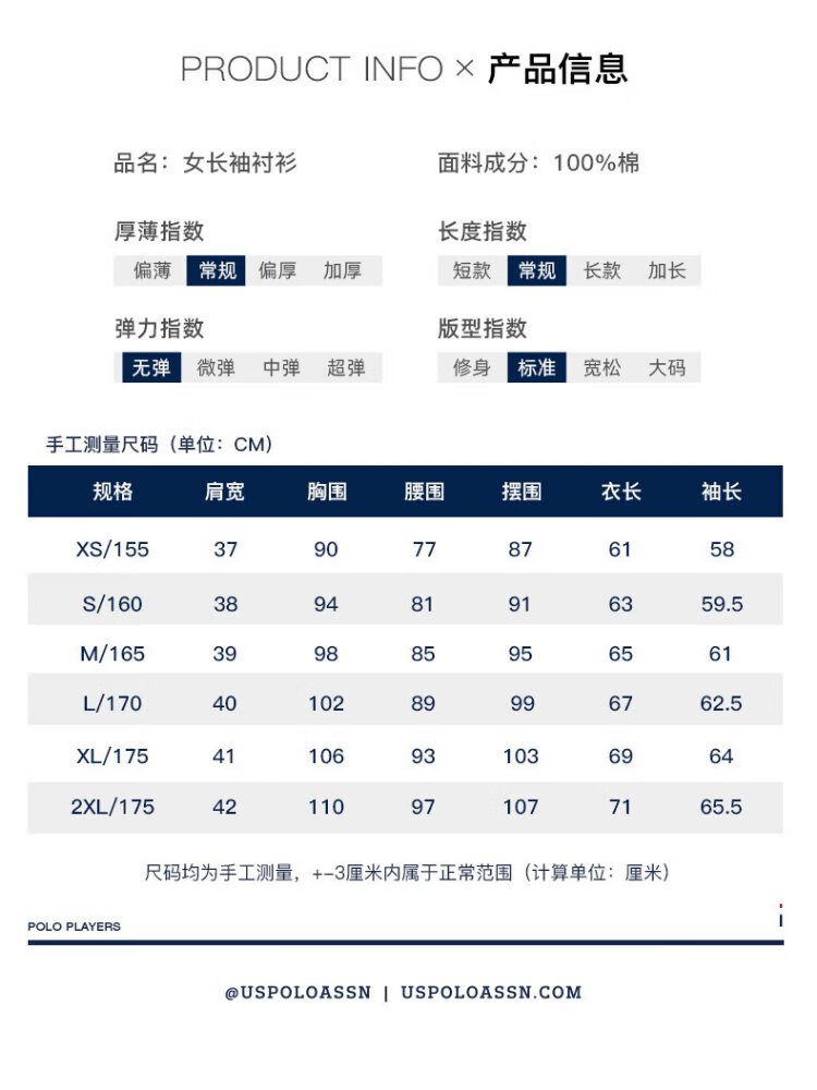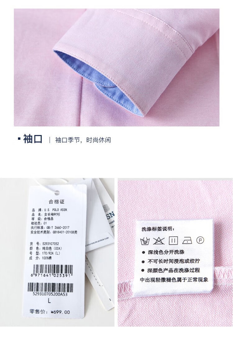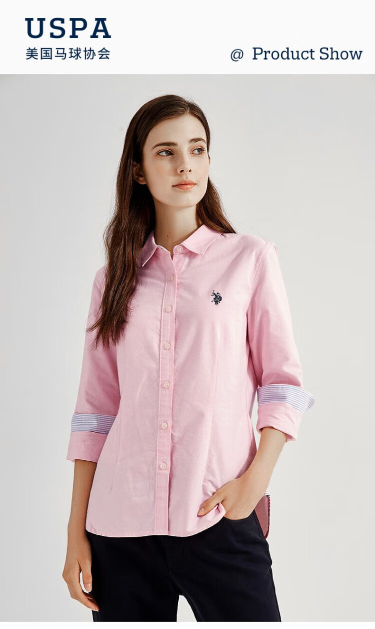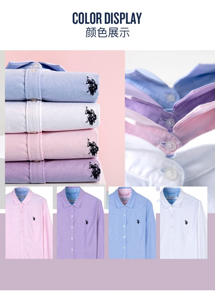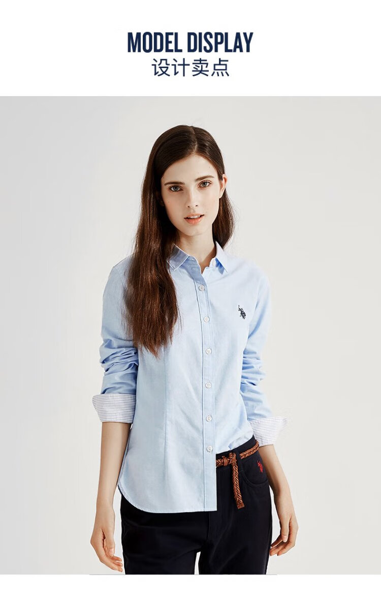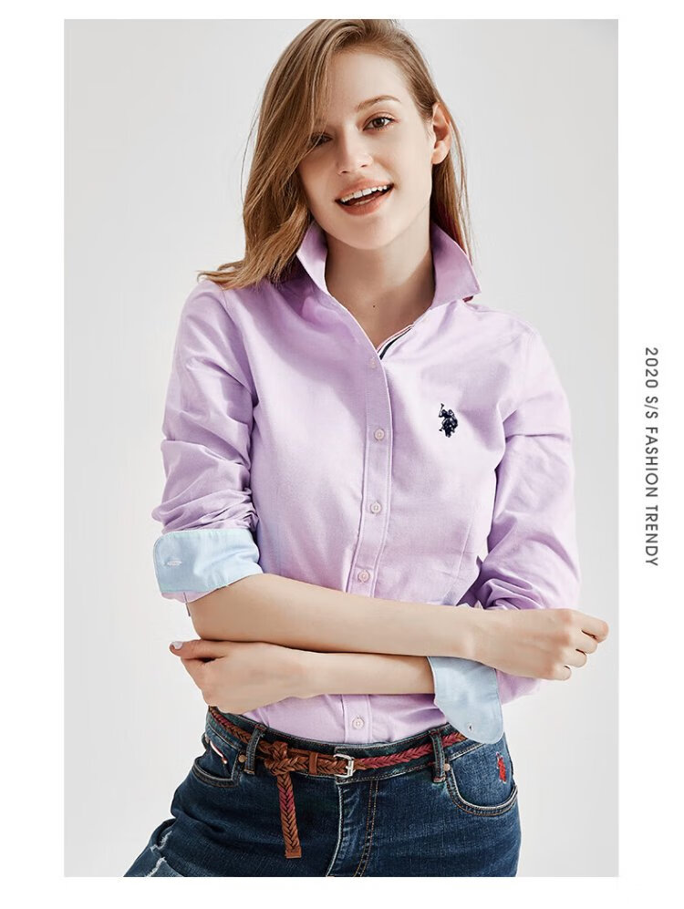 U.S. POLO ASSN. Long-sleeved shirt for women, solid color, anti-exposure, business casual, pure cotton white shirt, spring and autumn commuting lapel, women's coat top