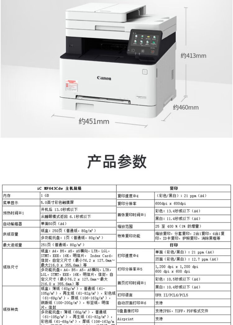 Canon MF643cdw wireless color laser A4 format multi-function printer/copy/scan all-in-one automatic double-sided/with document feeder/home support Kirin system